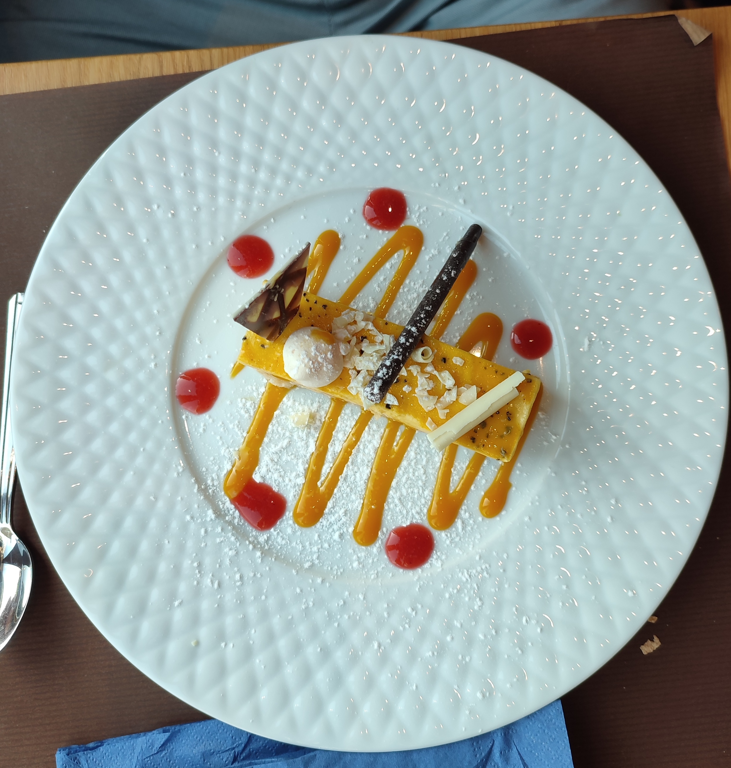 Agréable découverte d'un dimanche soir. De l'entrée jusqu'au dessert. Très bon. Changement de la sauce proposée spontanément pour le poisson. Dessert aux fruits exotiques excellent. Personnel très aimable.