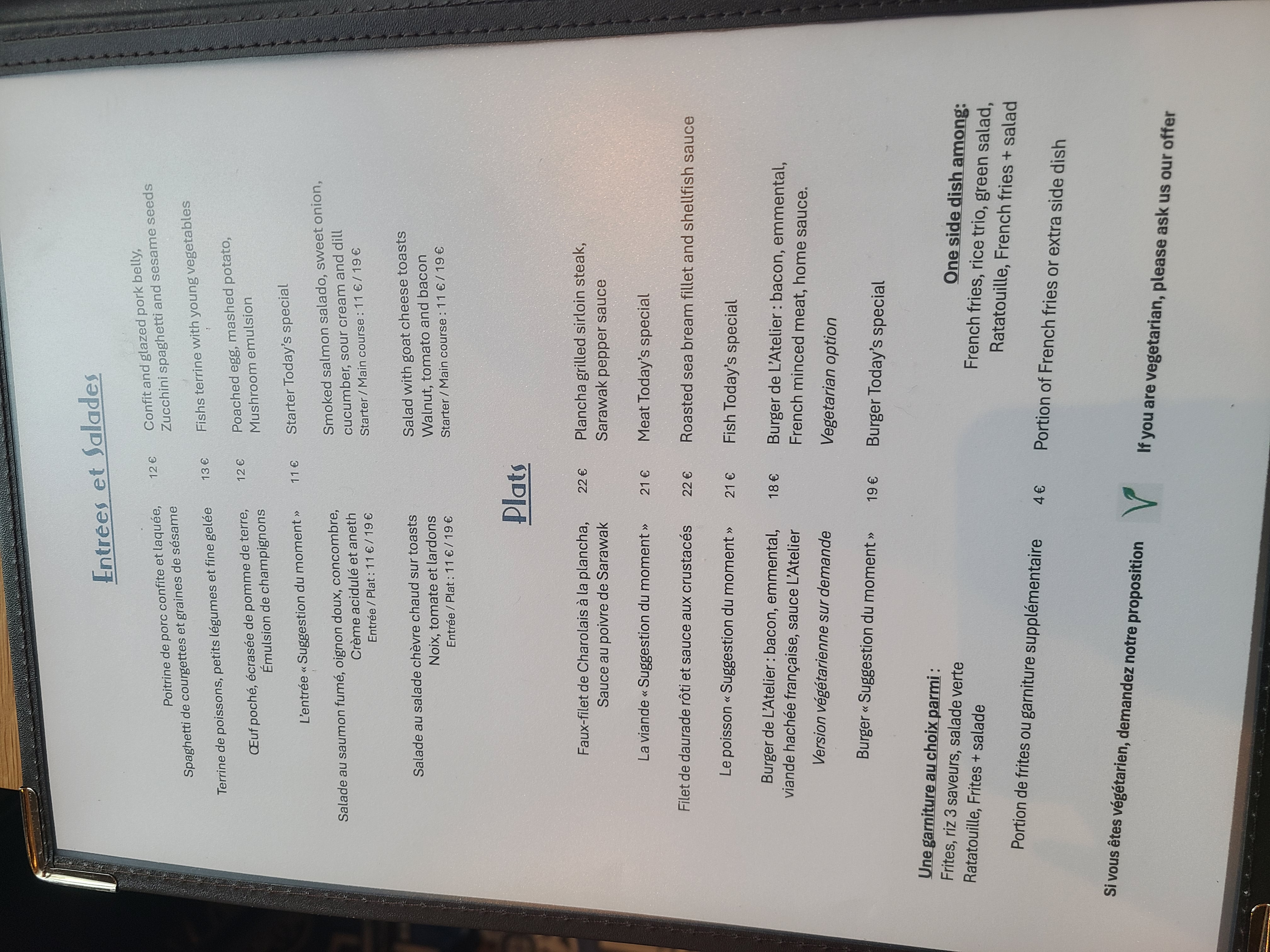 Nous avons passé un bon moment à l'Atelier. Nous avons été très bien accueilli et bien restauré. Nous recommandons ce bistrot-gastronomique sans hésitation..