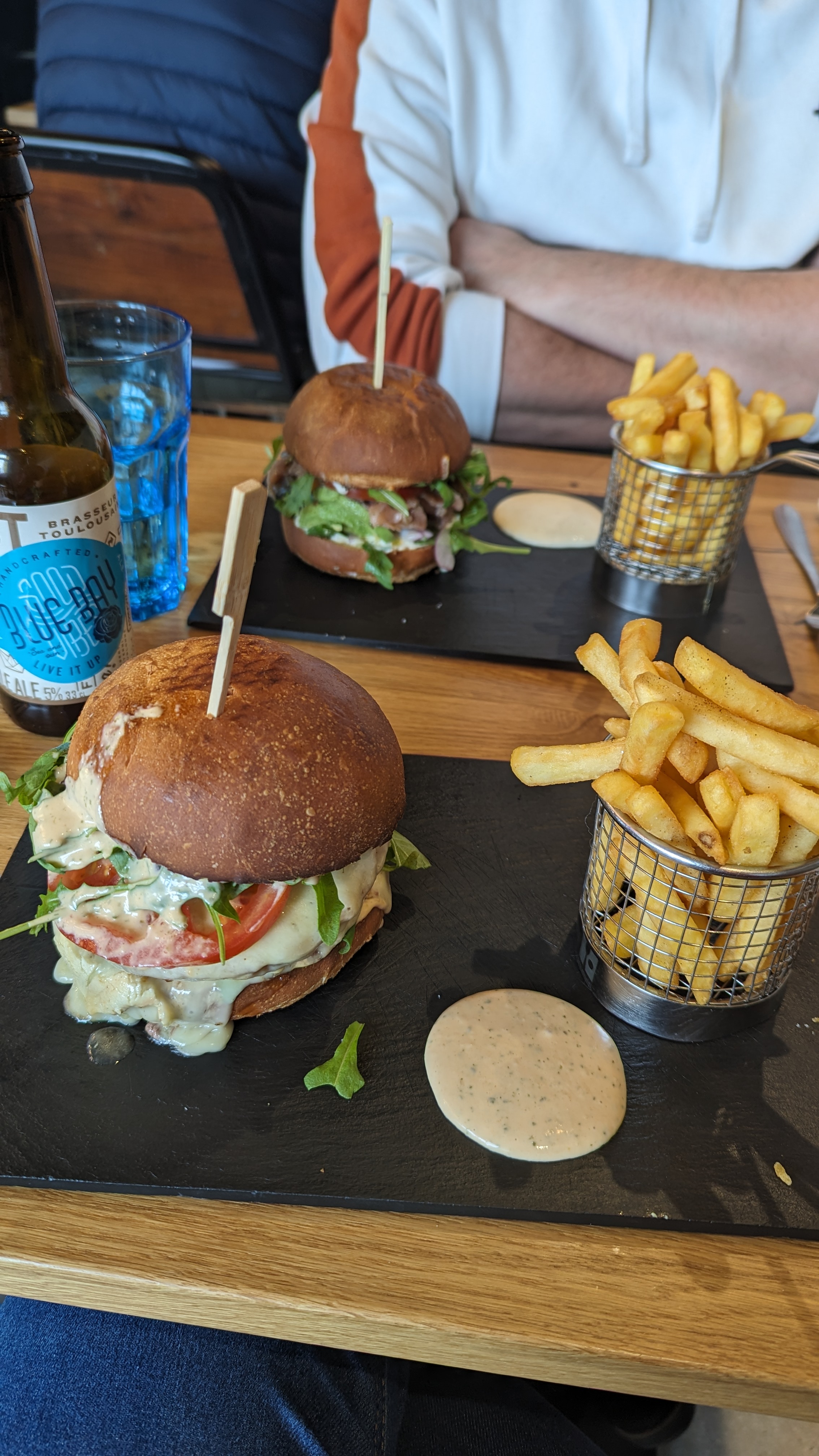 UNE VRAIE PÉPITE À MONTAUBAN ! Le burger est directement entré dans mon top 3 des meilleurs burgers de ma vie! Tous les ingrédients ont du goût, et ils sont mis en quantité extrêmement généreuse ! Que demander de plus? Des boissons/bières locales et délicieuses ? Un service rapide et des personnes très aimables? Un cadre cosy et agréable? Le tout pour des prix ultra raisonnables?! Tout y est !! Nous avons même eu une frite et DEUX desserts offerts (Merci encore) !! Vous pouvez y aller les yeux fermés, c'est impossible d'être déçu ! Et je ne vous parle même pas de la qualité de la carte, tout fait envie! (D'ailleurs la sauce maison est délicieuse !) Bref, en ce qui nous concerne, à très bientôt 😉