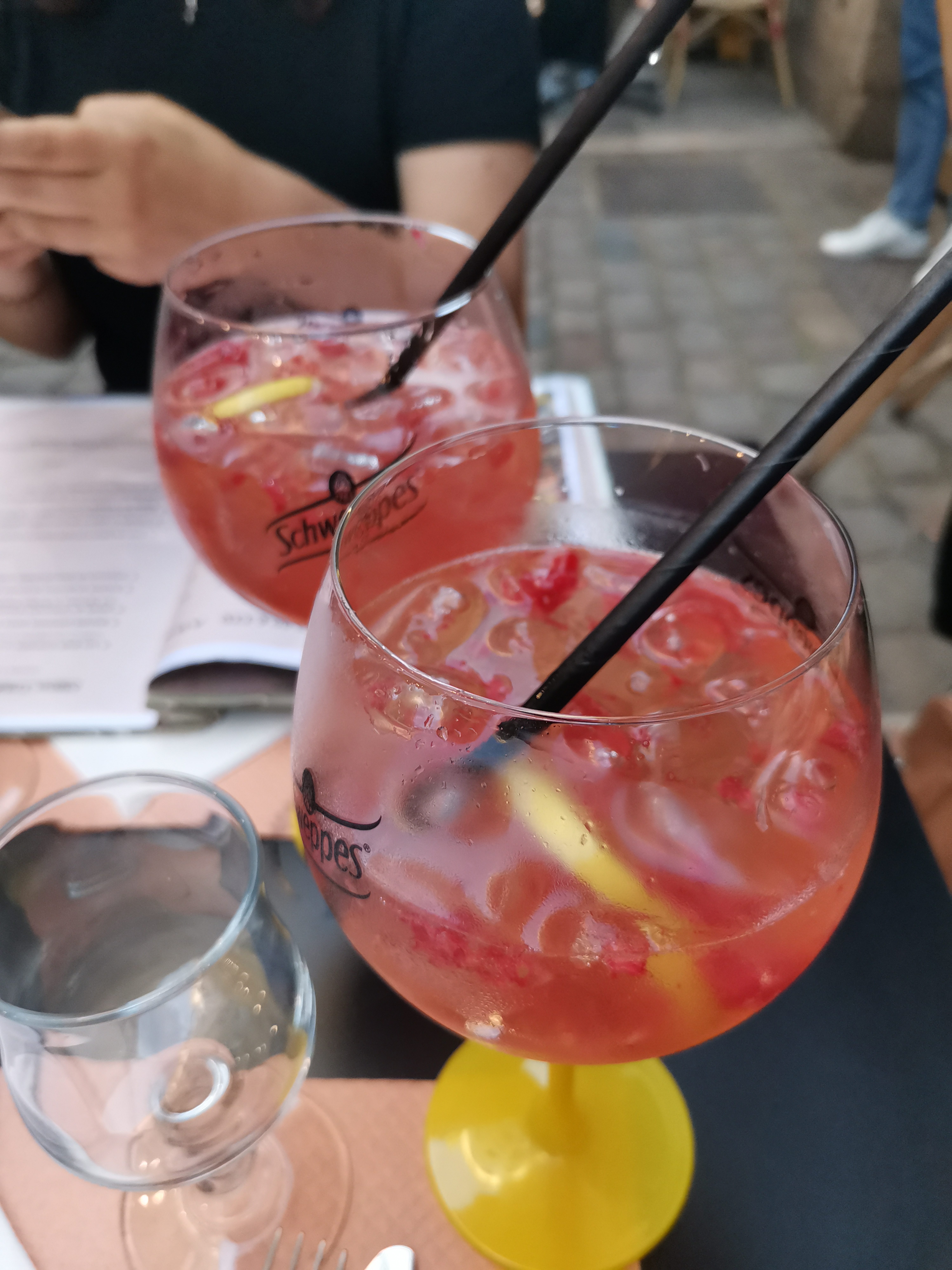 Rue très animée, très agréable. Personnel super sympa et professionnel ! Assiettes généreuses et fraîches 👍🏻