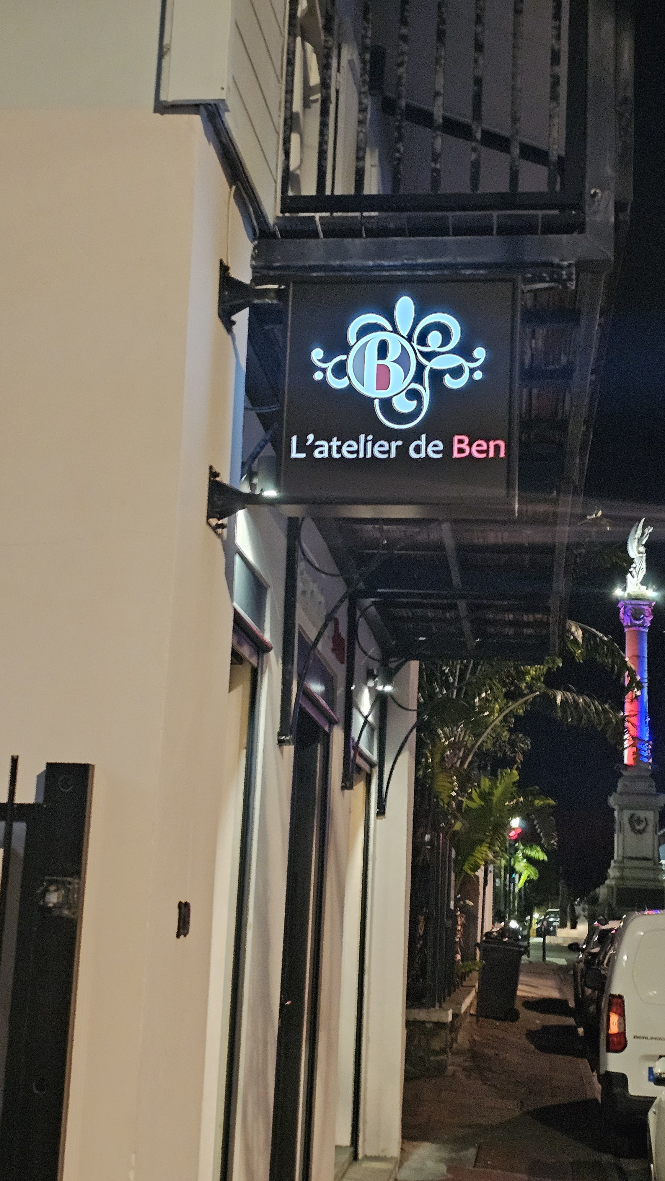 Après de chaudes recommandations, nous sommes venus avec des attentes à l’atelier de Ben. Le repas était superbe. Nous avons choisi des entrées, un plat principal et un dessert. Pour l'entrée, nous sommes partis sur des ravioles de foie gras, généreuses, originales et sophistiquées. L'alliance de l'artichaut, du foie gras et d'une mousse aérienne était parfaite, un véritable coup de cœur. En plat, nous avons opté pour des travers de porc et du poisson (Légine). La cuisson était impeccable, les sauces et garnitures harmonieuses et en parfait accord avec la viande et le poisson. Pour le dessert, nous avons été particulièrement séduits par le nuage à la mangue, peu sucré mais extrêmement raffiné et gourmand, digne d'un grand pâtissier. Nos attentes étaient davantage centrées sur les plats, mais le dessert nous a agréablement surpris. En résumé, le repas était d'un haut niveau du début à la fin. Le vin recommandé s'accordait également très bien avec les mets. Nous reviendrons suivre les créations du chef pour notre prochain séjour!