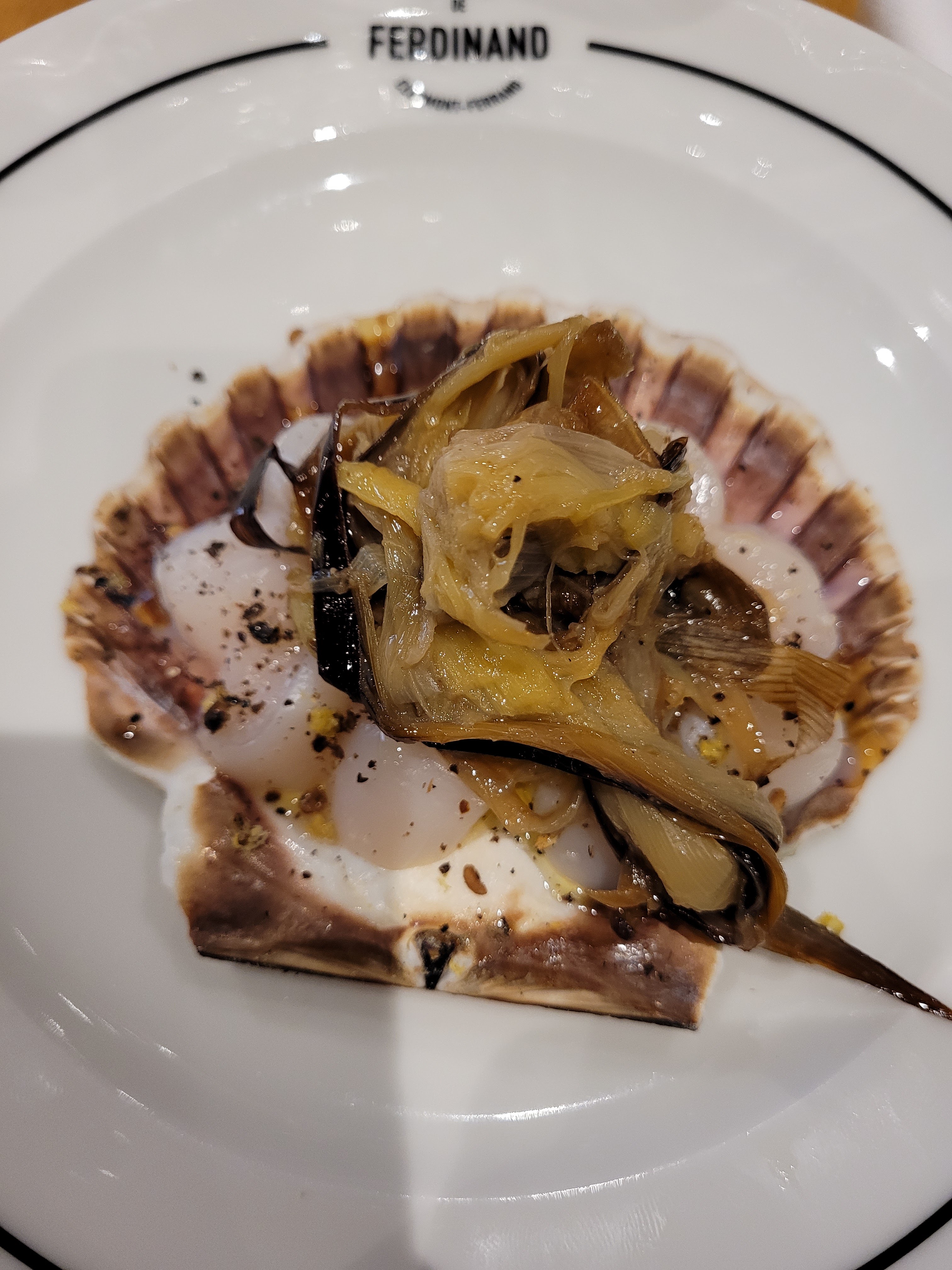 Après avoir déjeuné 3 ou 4 fois à l'Atelier de Ferdinand, et apprécié vraiment, à chaque fois, la qualité du lieu, de l'accueil et des assiettes, nous avons commandé 6 repas pour le réveillon de Noël Je recommande sincèrement ce choix, qui m'a permis de recevoir mes enfants en détente totale. Les mets étaient raffinés, les sauces délicieuses. Un vrai plaisir de dresser les assiettes, parfaitement étudiées. Bravo! Grâce à vous, ce fut un Noël réussi et joyeux.