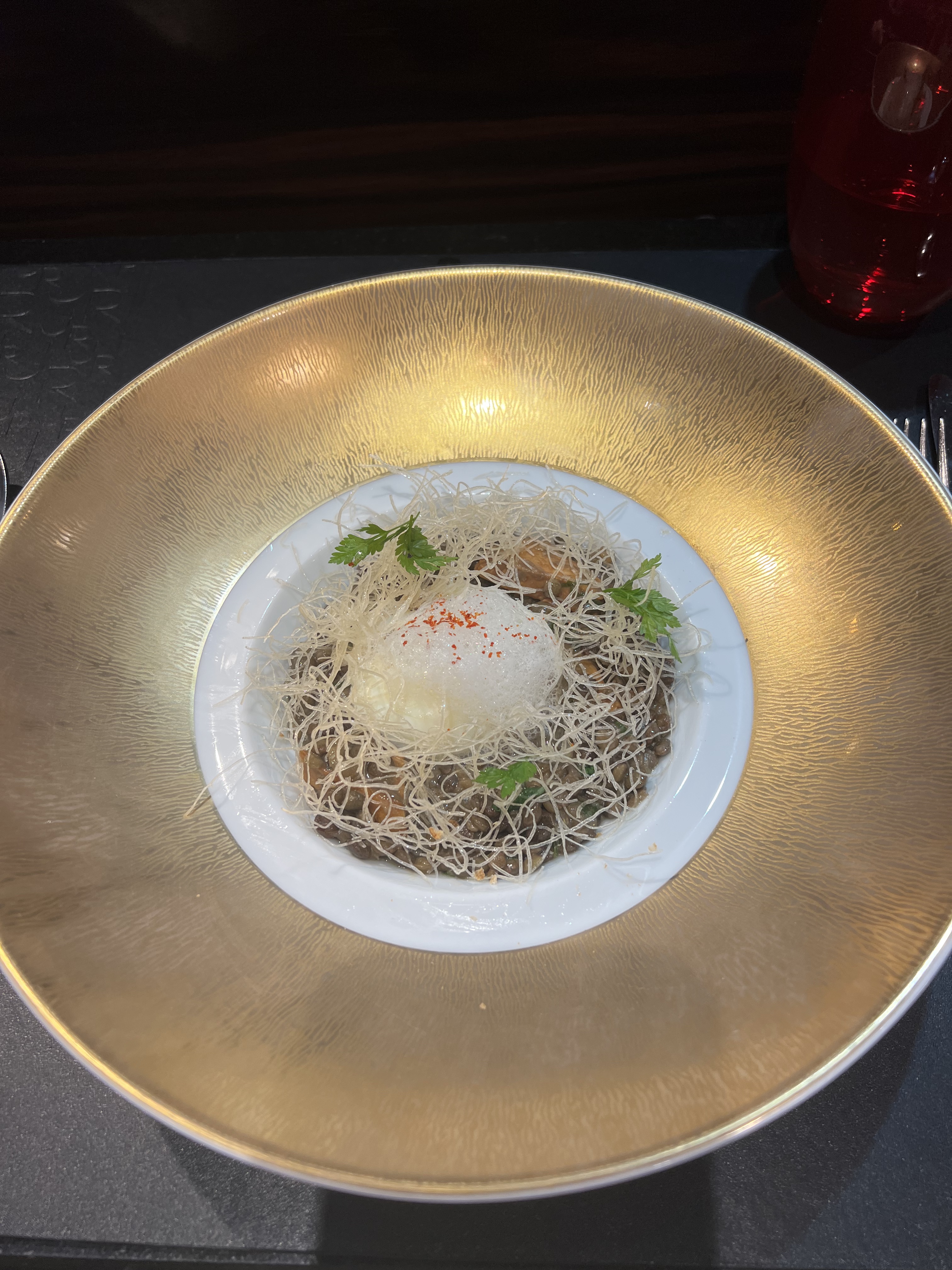 L'excellence... le menu dégustation (plats en petites portions) c'est juste génial. Les plats défilent et sont tous plus délicieux les uns que les autres. Diner au comptoir face aux cuisines c'était vraiment sympa et original. Et l'équipe à notre service ce soir là était juste adorable pour les 18 ans de mon fils et le dessert lui a été offert dans une assiette joliment décorée pour l'occasion. Je recommande sans aucune hésitation.
