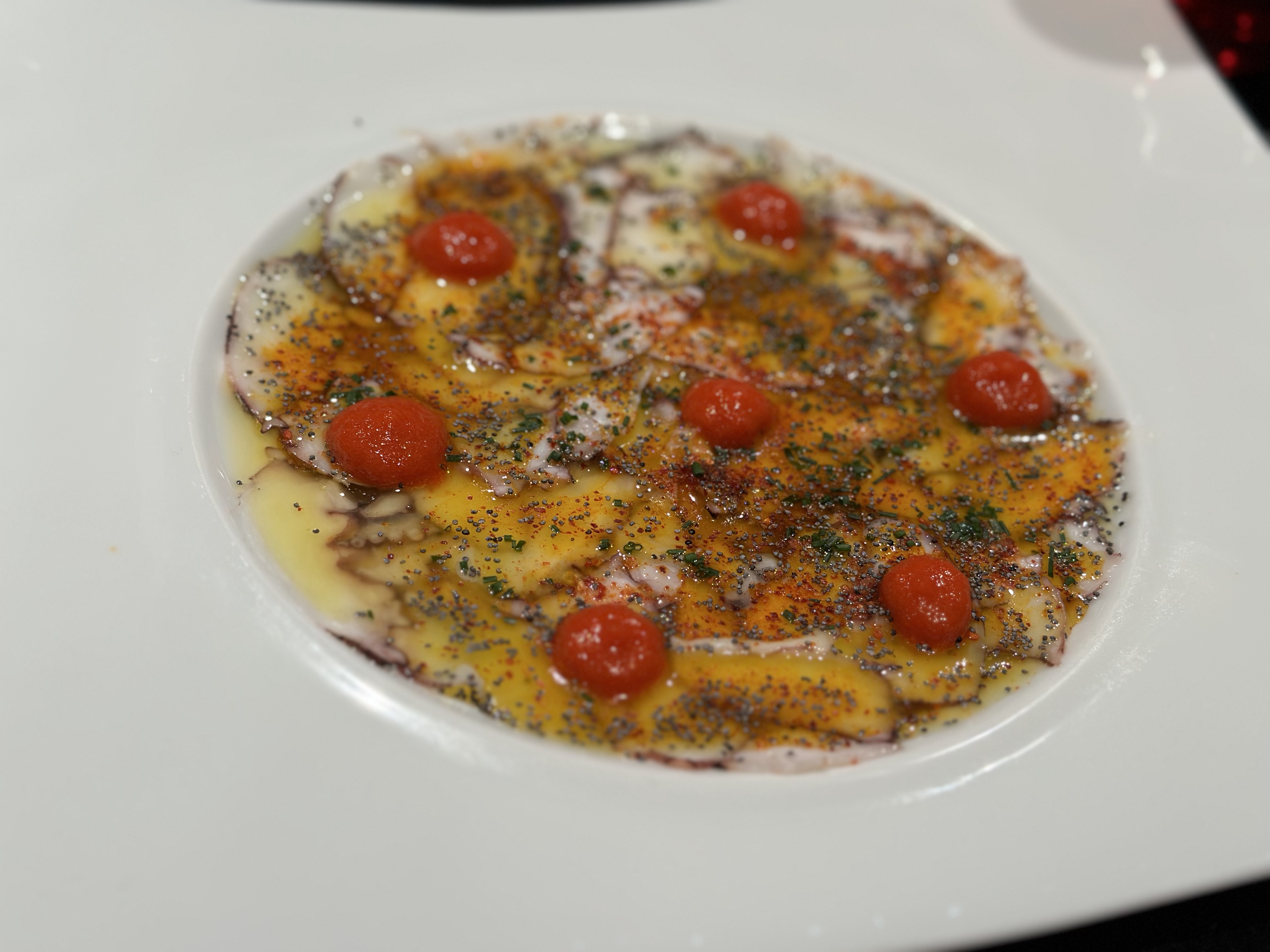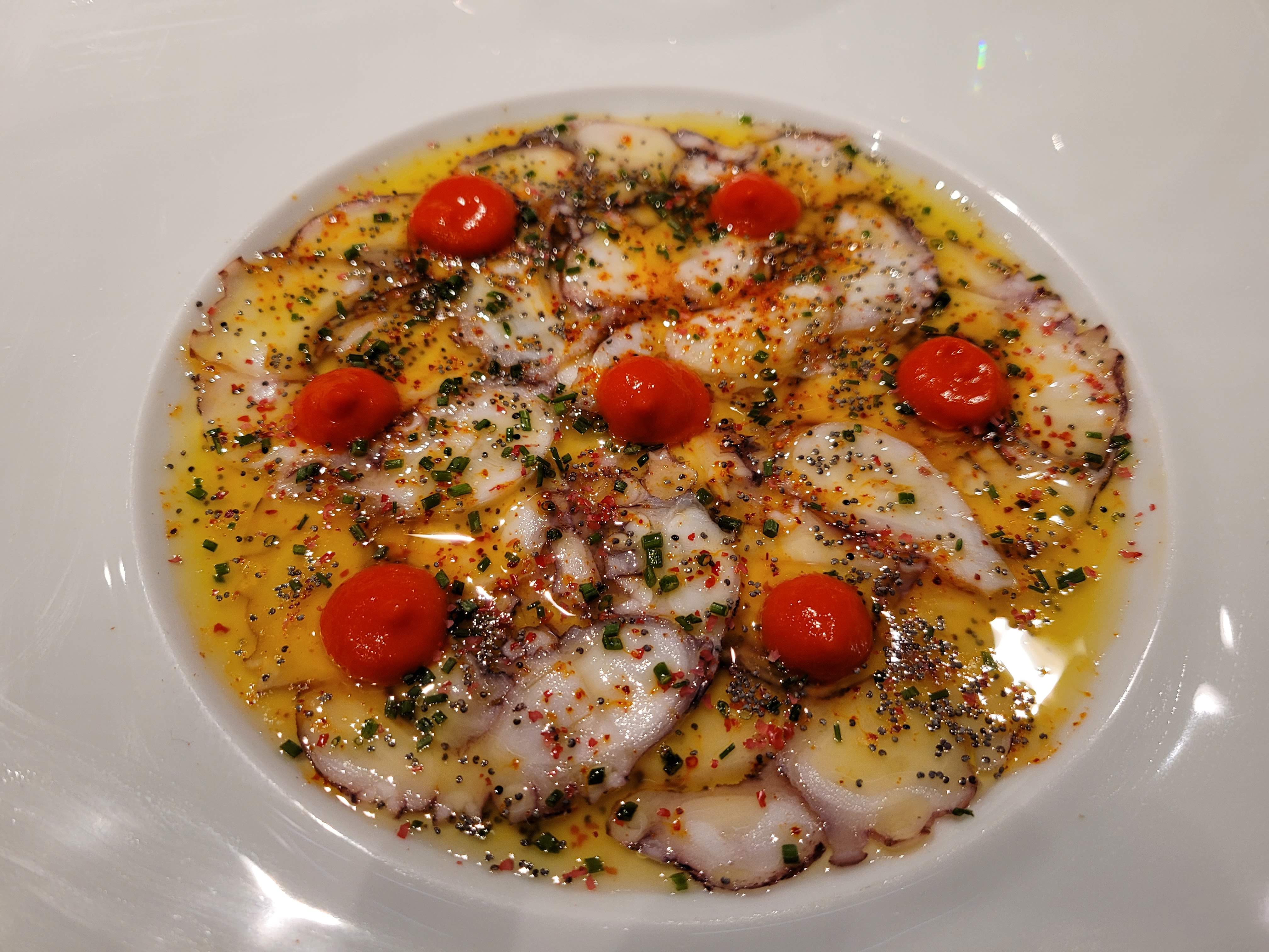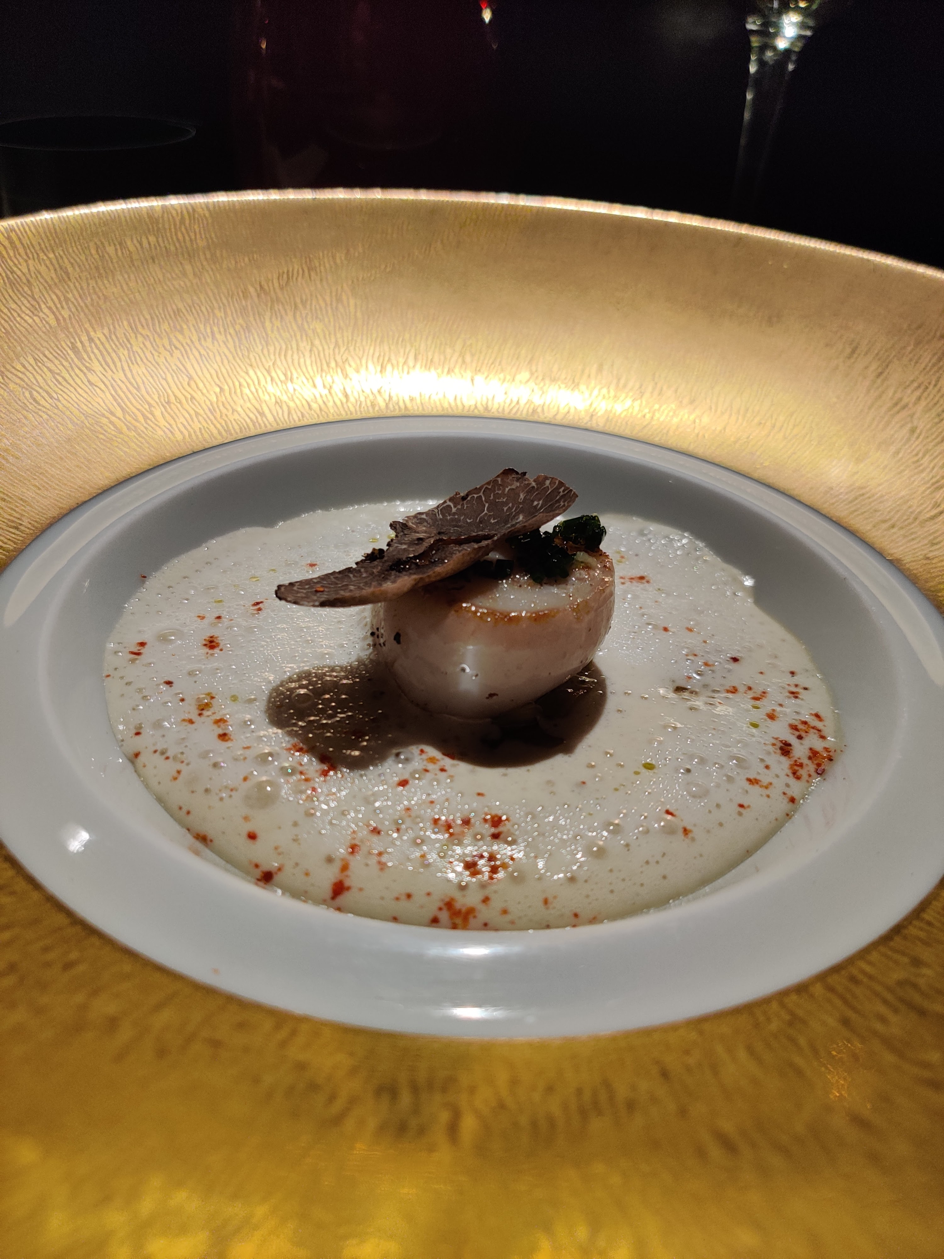 C'était notre deuxième visite. Il y avait du monde au bar et le service semblait désorganisé. Le premier serveur (et uniquement féminin) était très bon, mais comme nous passions entre plusieurs, le second était très difficile à entendre (homme à la voix douce) et avait du mal à nous entendre/comprendre, même en commandant en français. Un article n’a finalement pas été commandé. Le troisième (également un homme) était génial. L'entrée de langoustine n'était pas chaude. Le carpaccio de poisson était délicieux, tout comme l'entrée de pétoncles. L'expérience a été bonne, mais il lui manquait le charme, notamment au niveau du service, que nous avons reçu lors de notre visite il y a six ans.
