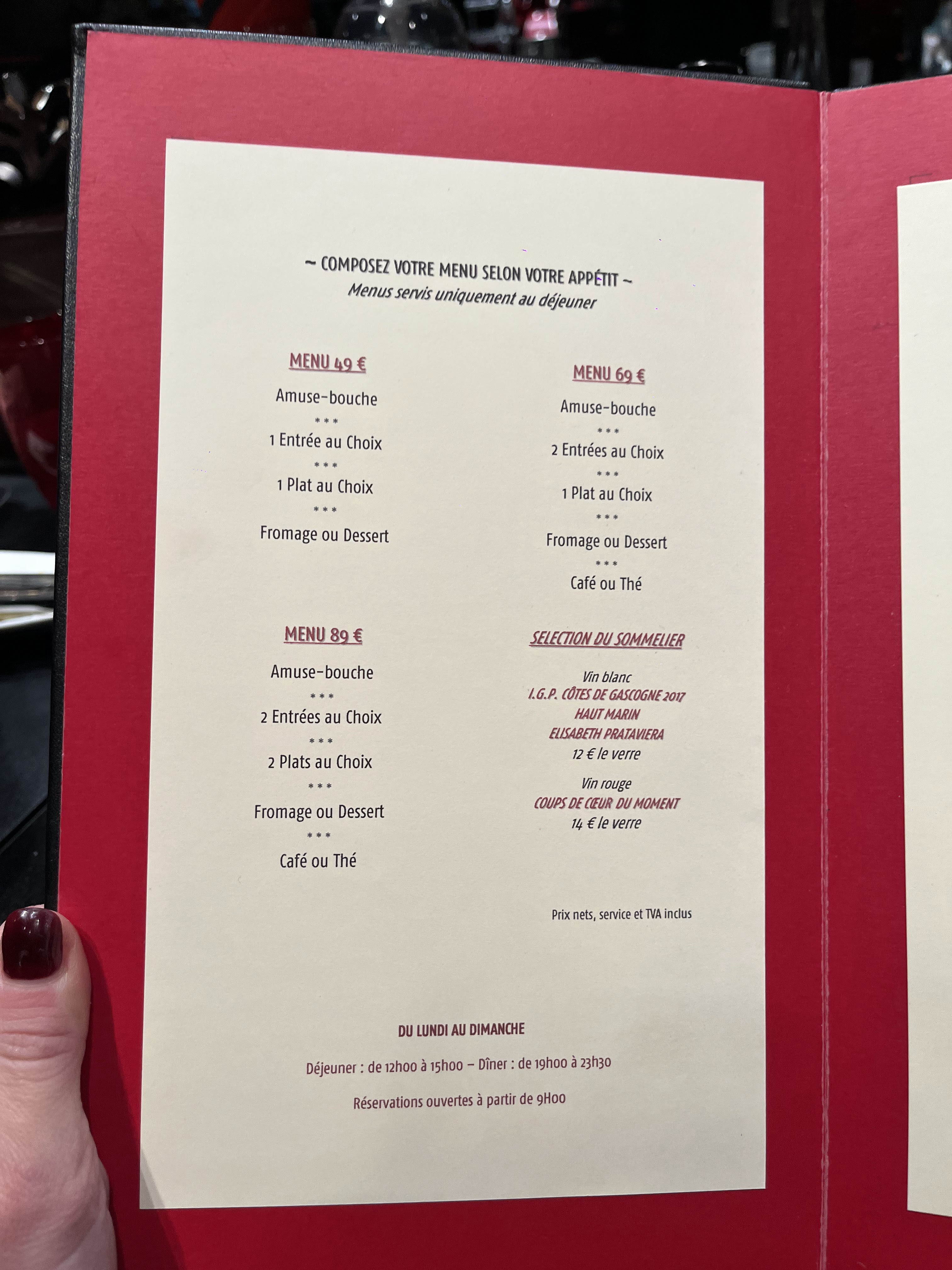 Excellent menu à 49 euros. Le service adorable et professionnel à la fois. Le lieu très chaleureux.