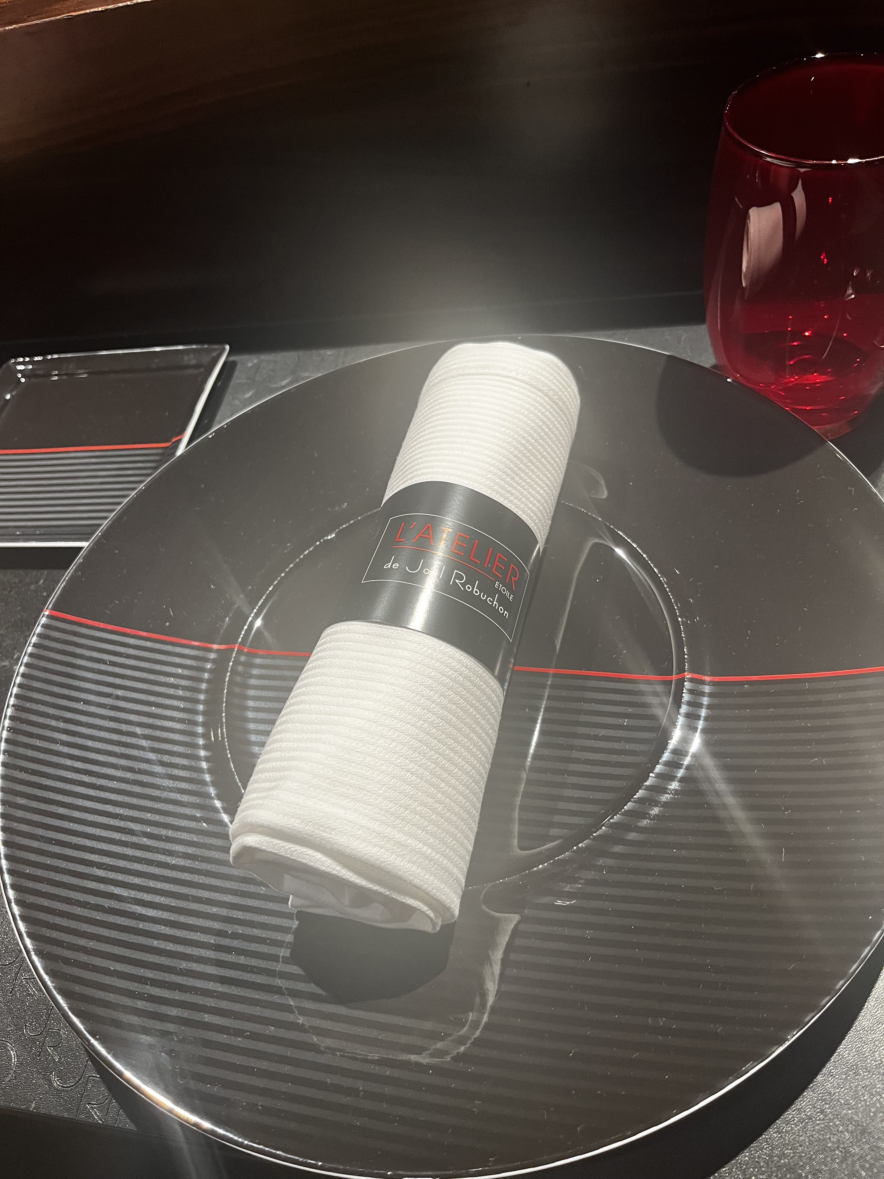 Incroyable expérience multi-cours pour deux, 9 cours au total. Nous nous sommes assis au bar, ce que nous recommandons à tous ceux qui y vont pour la première fois, ou à n'importe quel restaurant Joel Robuchom. C'est notre troisième restaurant où nous avons eu le plaisir de dîner. L'attention portée aux détails et au goût unique est quelque chose de spécial. Gardez simplement à l'esprit qu'étant donné qu'il s'agit d'un menu dégustation, les portions sont petites, mais vous serez rassasié, alors allez-y doucement avec le pain…. Une chose qui était intéressante, c'est l'emplacement. Sans méfiance, dans le sous-sol d'un dépanneur.