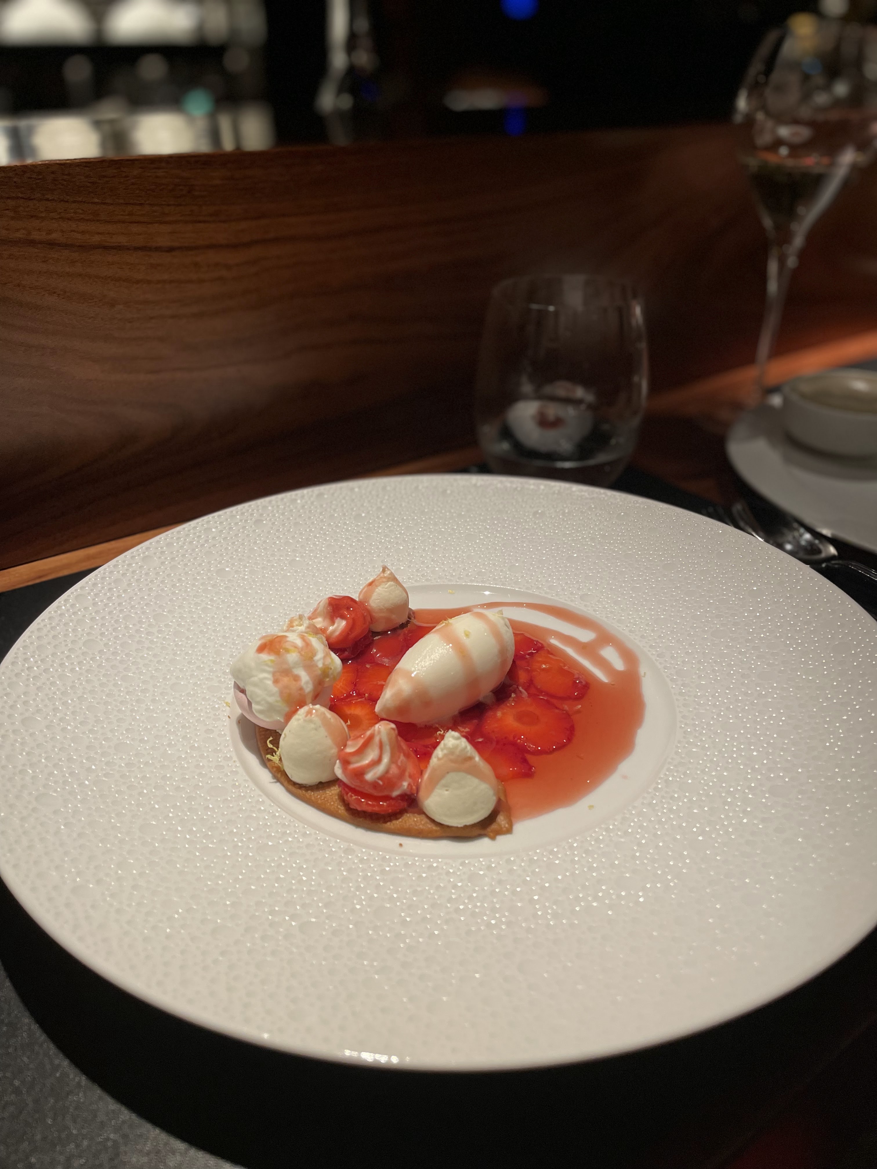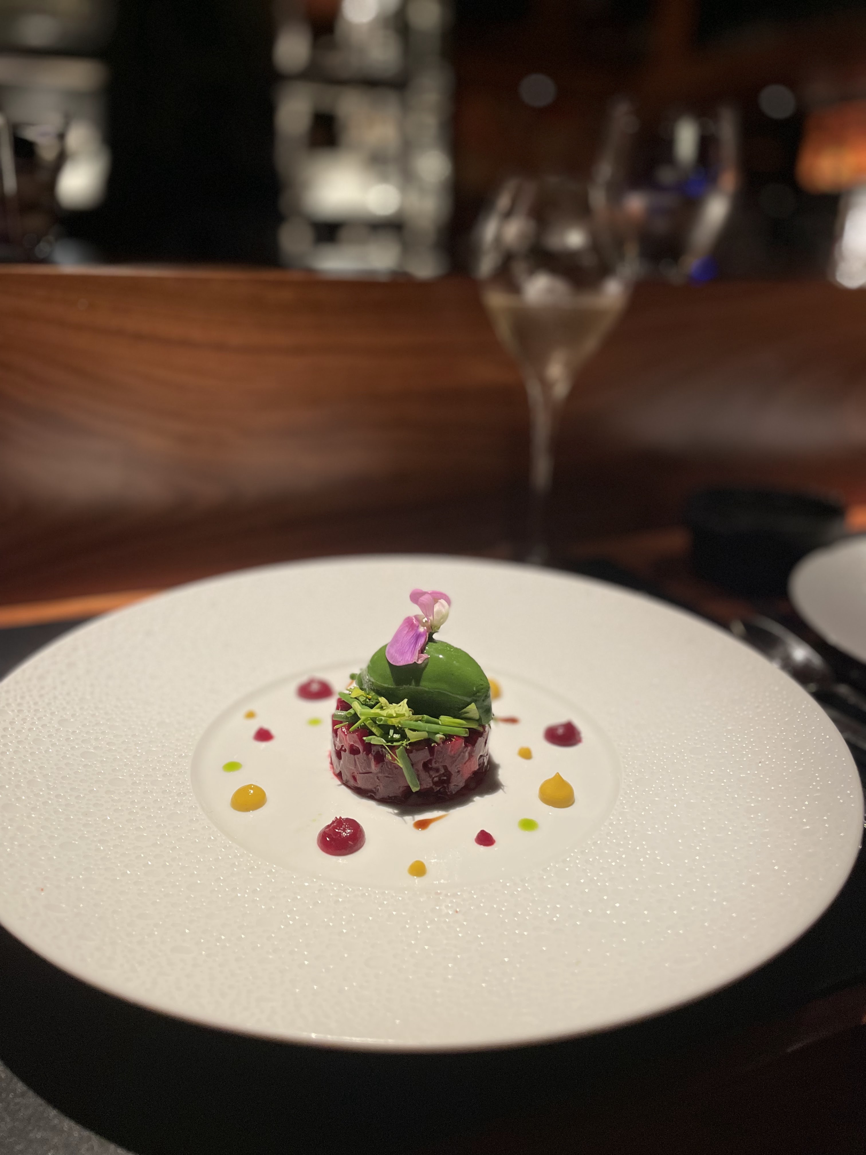 Il y a toujours quelques restaurants dans la vie qui laissent une impression durable, et celui-ci en fait partie. Je recommande fortement de dîner en bas et de choisir le menu dégustation avec l'accord mets et vins pour une expérience transcendantale. La cuisine est inventive, joliment préparée et servie par un personnel aimable. J'aurais aimé que l'équipe vienne de derrière le bar pour servir et retirer les plats, mais ce n'est qu'une chicane frivole qui n'a aucune incidence sur notre dîner de premier ordre.