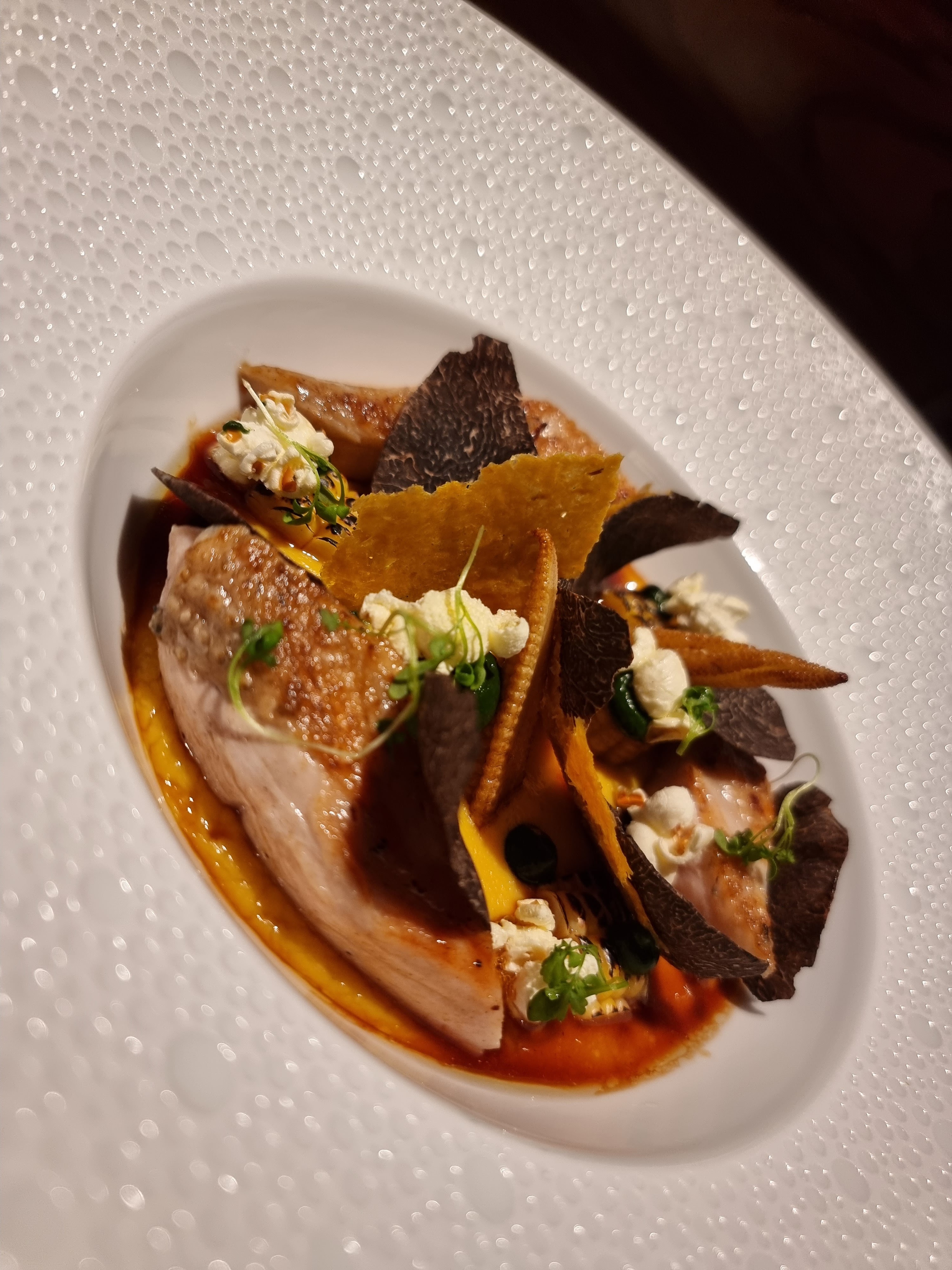 Quel super endroit! Le menu de dégustation était joliment présenté, inspiré et ne vous a pas laissé rassasié. Belle salle à manger et toit également. Le personnel était extrêmement sympathique, bien formé et attentif - nous reviendrons certainement.