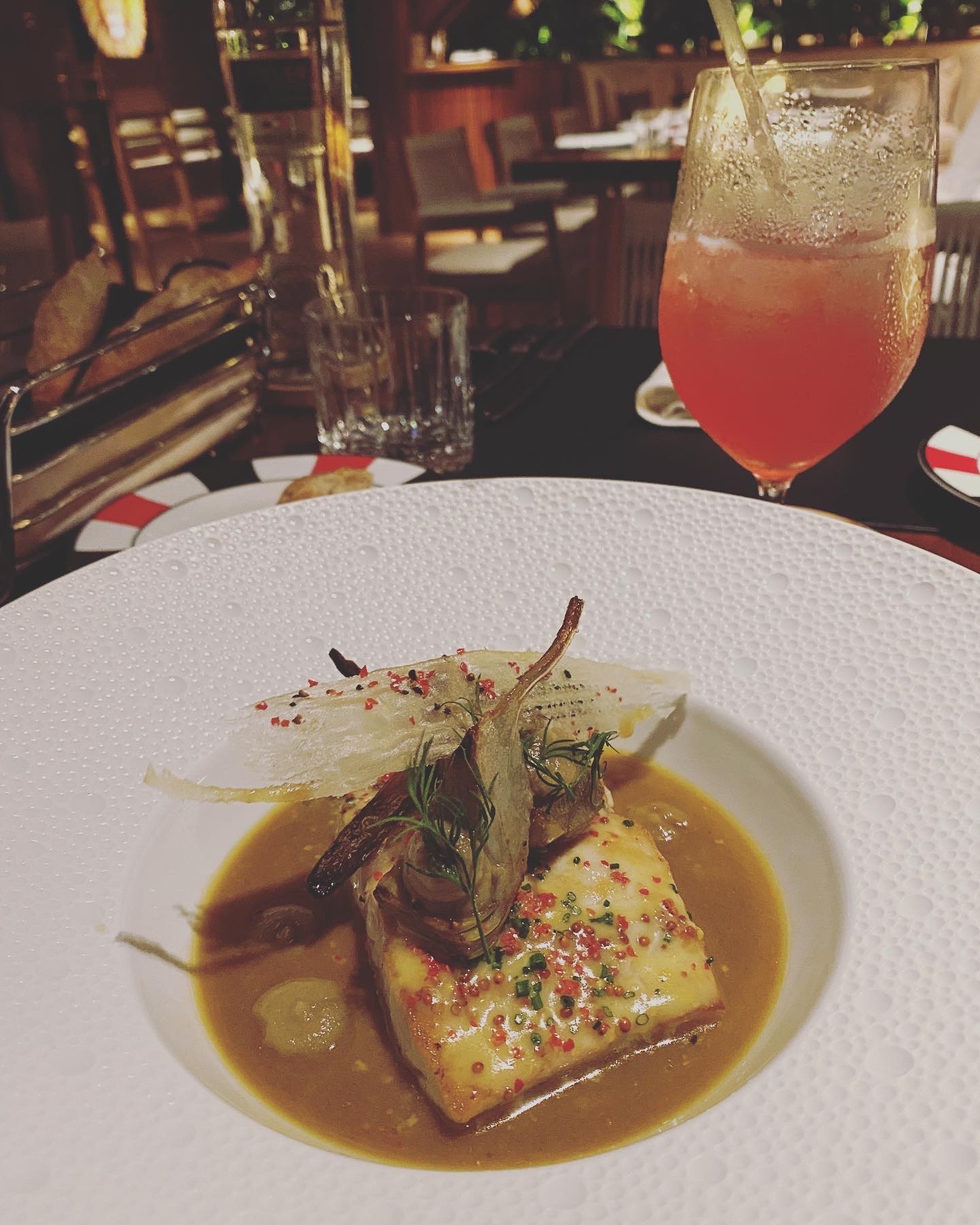 Nous avons passé une merveilleuse soirée à L'atelier. C'était hier soir à 8 heures sur l'île. Nous étions donc allés dîner dans de nombreux restaurants haut de gamme tous les soirs. Ce fut un dîner très mémorable du début à la fin. Nos boissons étaient à noter! C'étaient des œuvres d'art et plutôt rafraîchissantes ! J'ai eu le Mahi-Mahi et mon mari a pris un faux-filet. Les deux étaient excellents et cuits à la perfection ! Nos desserts ont parfaitement terminé le tout. J'ai eu un soufflé au chocolat (encore tiède) à la vanille maison qui m'a pris des places si vous voyez ce que je veux dire !!! MDR Et une colombe nous a même rejoint pour le dîner !!!! La seule chose que nous devons accomplir est d'apprendre à chaque restaurant de l'île comment préparer du café américain. Nous avons essayé Americano & Café Allonge ! Mais nous n'arrêtions pas de recevoir un grand expresso. C'était amusant quand même !!!