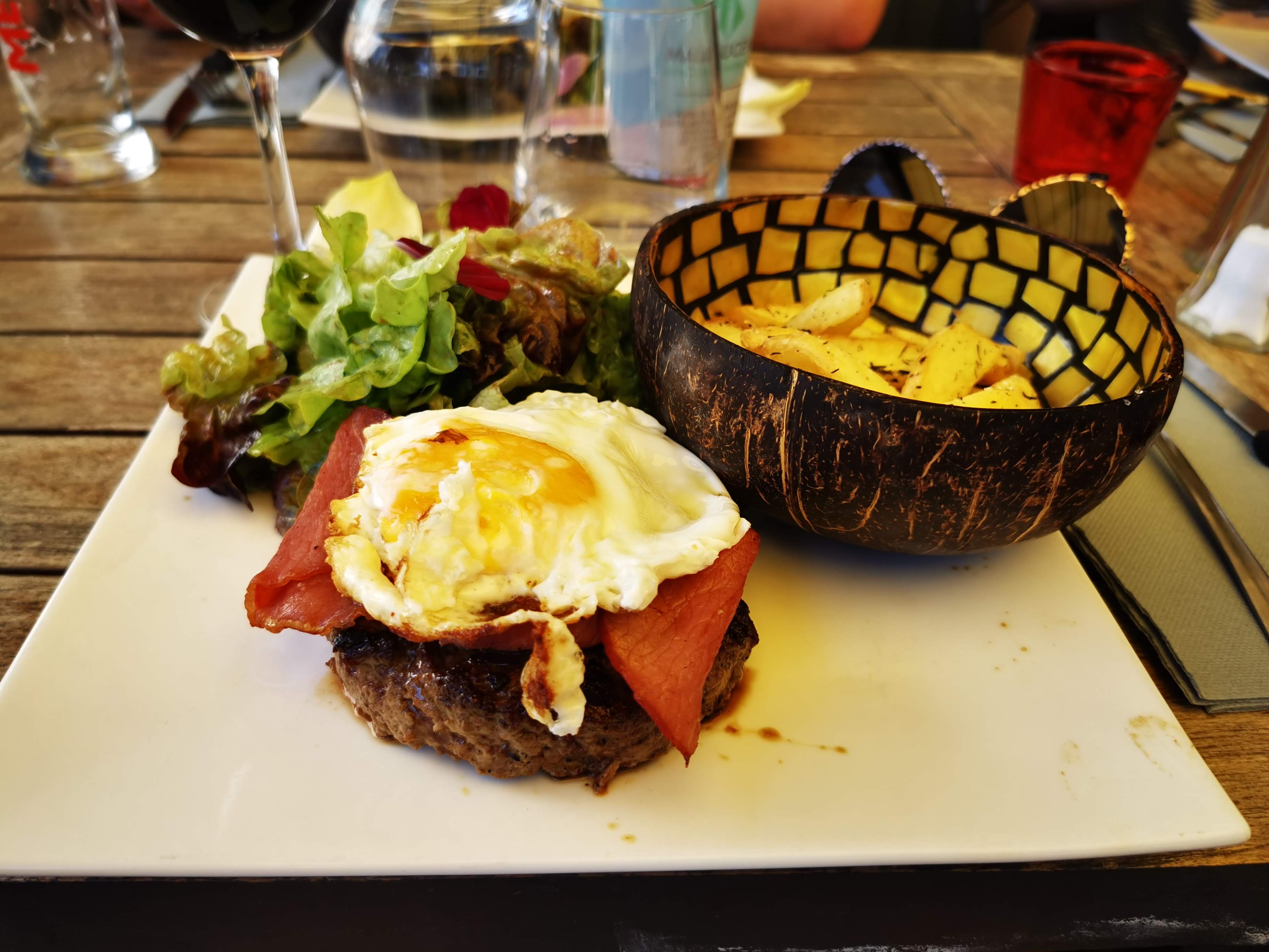 Super restaurant, tout était excellent (burger frites & vin), et la dame (la propriétaire ?) était adorable 😊 En plus le lieu est beau ! Pensez à réserver