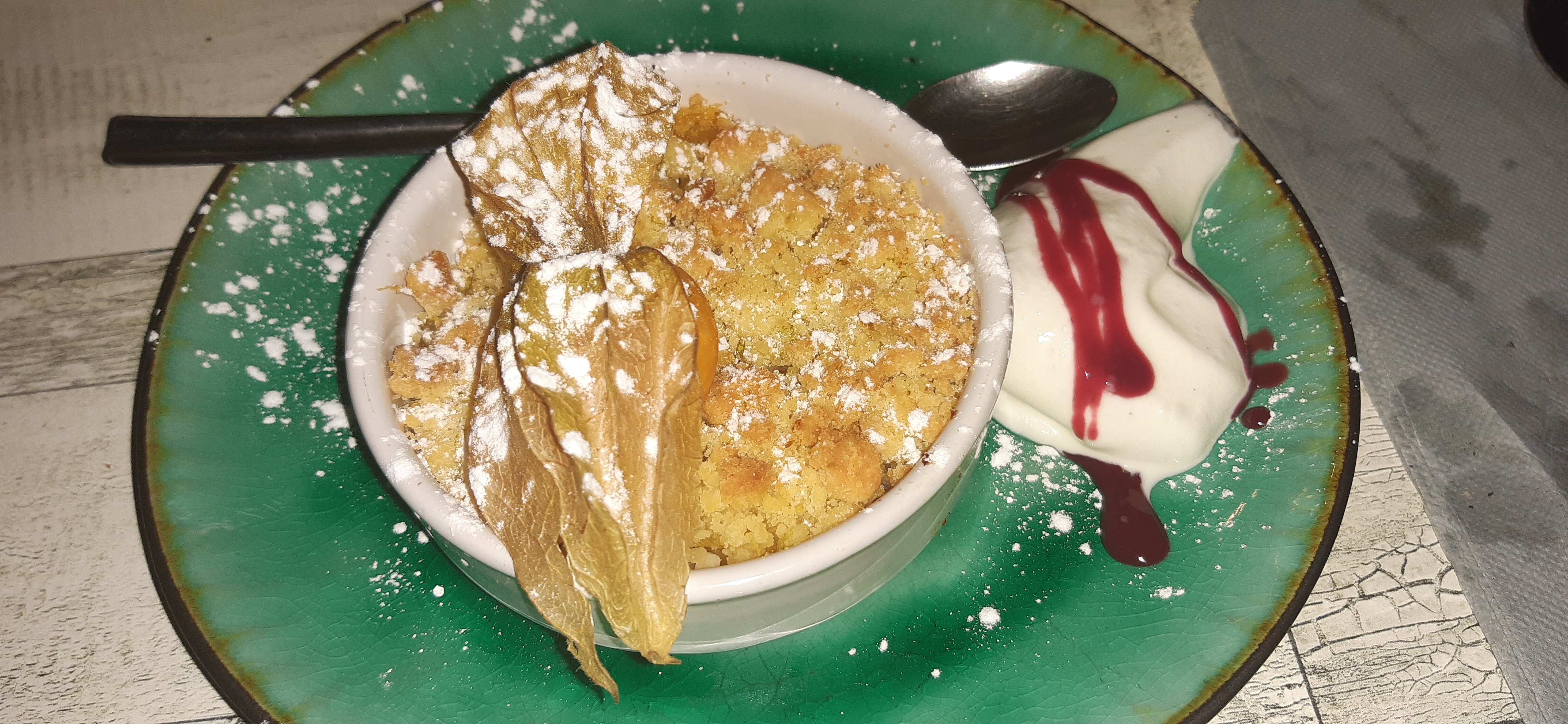 On a bien mangé mais....on a pris l'apéritif, il n'y avait rien avec,pas même une cacahuètes ! On avait à peine commencé l'apéritif que notre plat était devant nous puis notre verre de vin ! Très belle présentation de l'assiette ! Dommage qu'elle soit très ébréchée ! Par contre, c'était bon Des petites choses à rectifier !