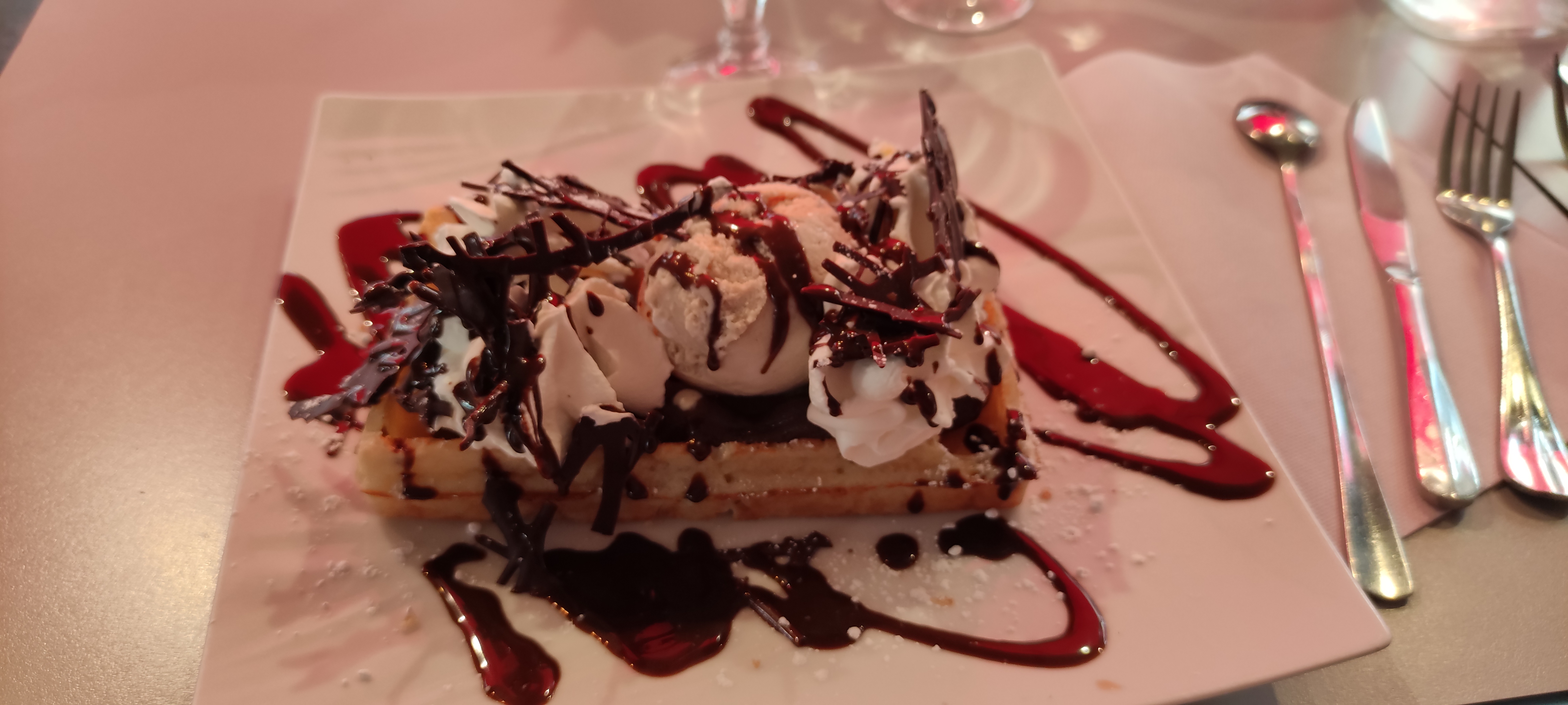 Je conseillerais à tout le monde, des coupes, des gaufres somptieuses et extrêmement bonnes. Ils servent encore du salé à 16h avec de très bonne moule que dire de plus mise à part qu'il faut y aller 😁👌
