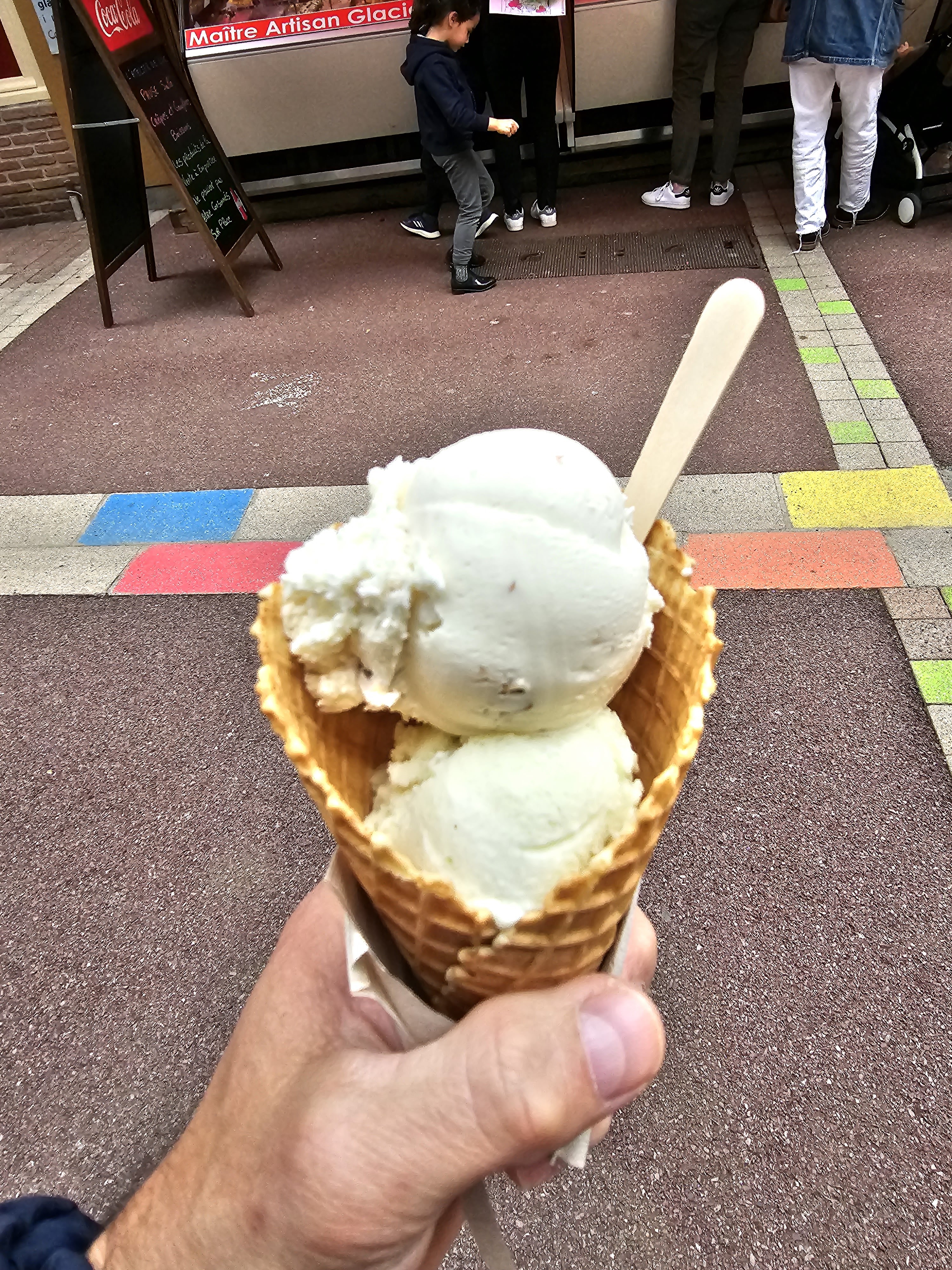 Un lieu agréable où s'arrêter pour se rafraîchir et se désaltérer : choix varié de glaces, de gaufres et de crêpes à des prix corrects dans ce quartier de la ville. Rien à dire sur la coupe Normandie ou la gaufre duchesse si ce n'est qu'elles sont bonnes et les portions généreuses. Très bon cidre en pichet aussi, c'est assez rare pour le souligner. Nous reviendrons goûter les crêpes salées. Une des étoiles de la note est attribuée pour le rapport qualité-prix.