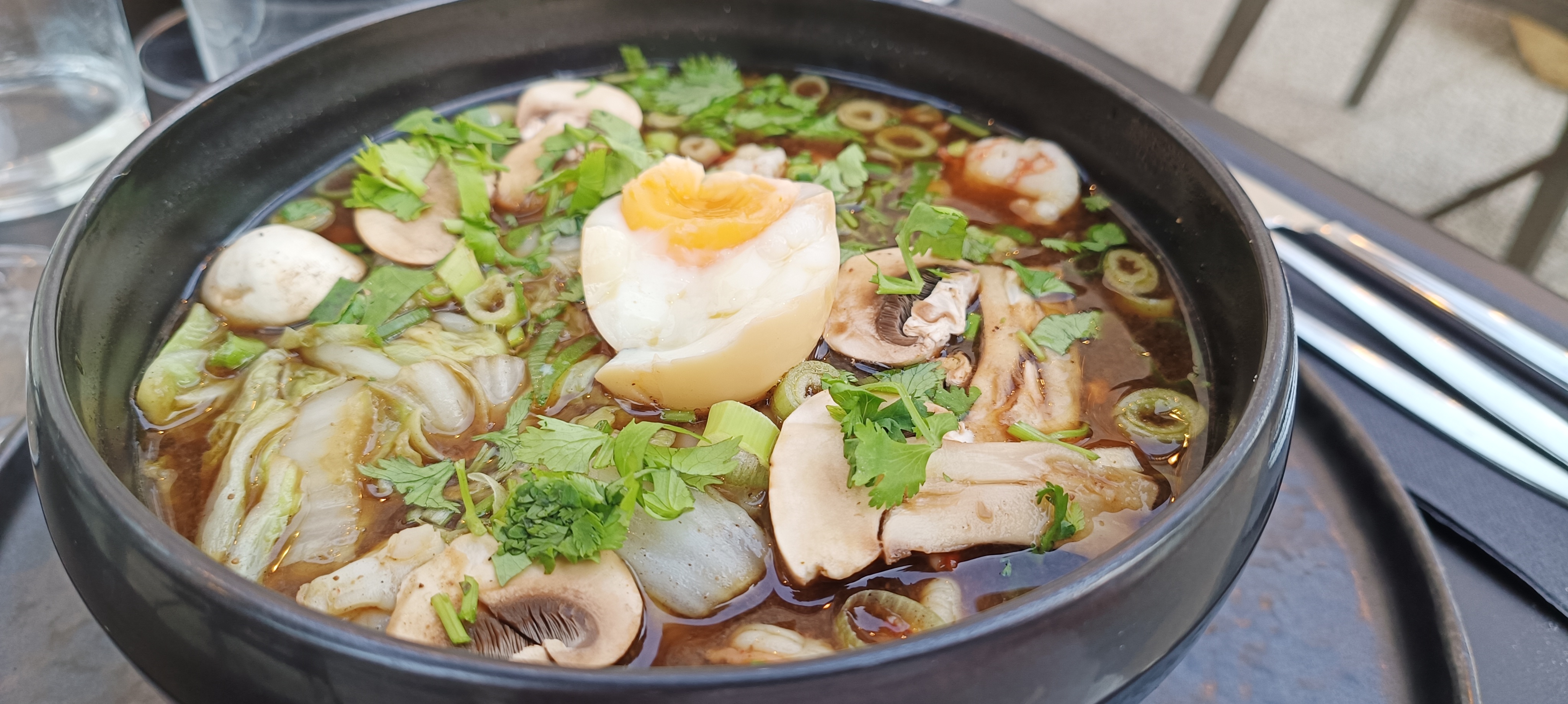 Nous avons pris un poke bowl au déjeuner, beau, frais et délicieux. Alors nous sommes revenus le lendemain pour le dîner. Raviolis, soupe ramens, bœuf sauce tigre qui pleure..... Tout est à tomber..... Félicitations Margaux.