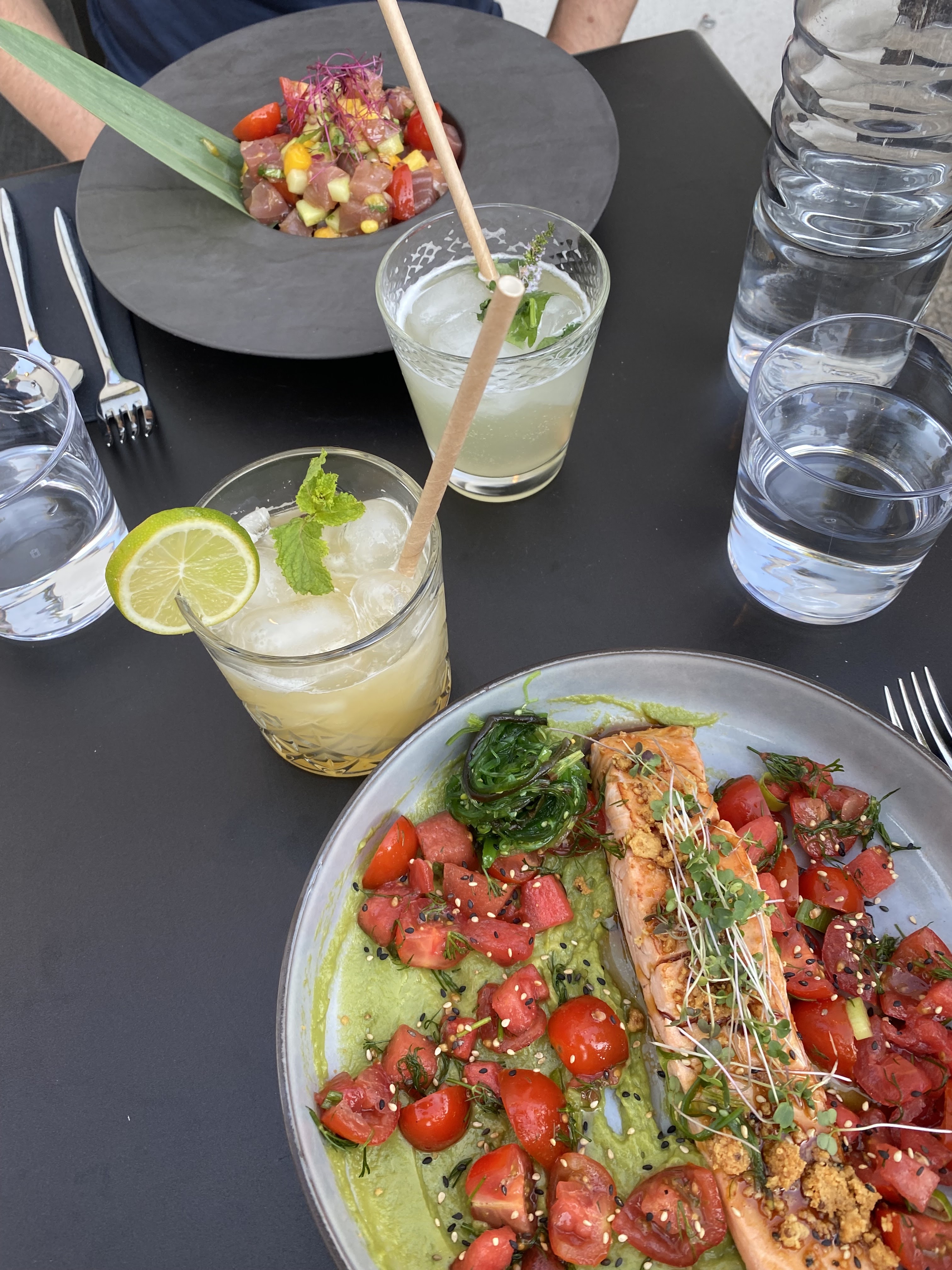Des produits frais, de bons cocktails, des assiettes copieuses, des saveurs équilibrées… Un joli moment un soir d’été sur la route de nos vacances.