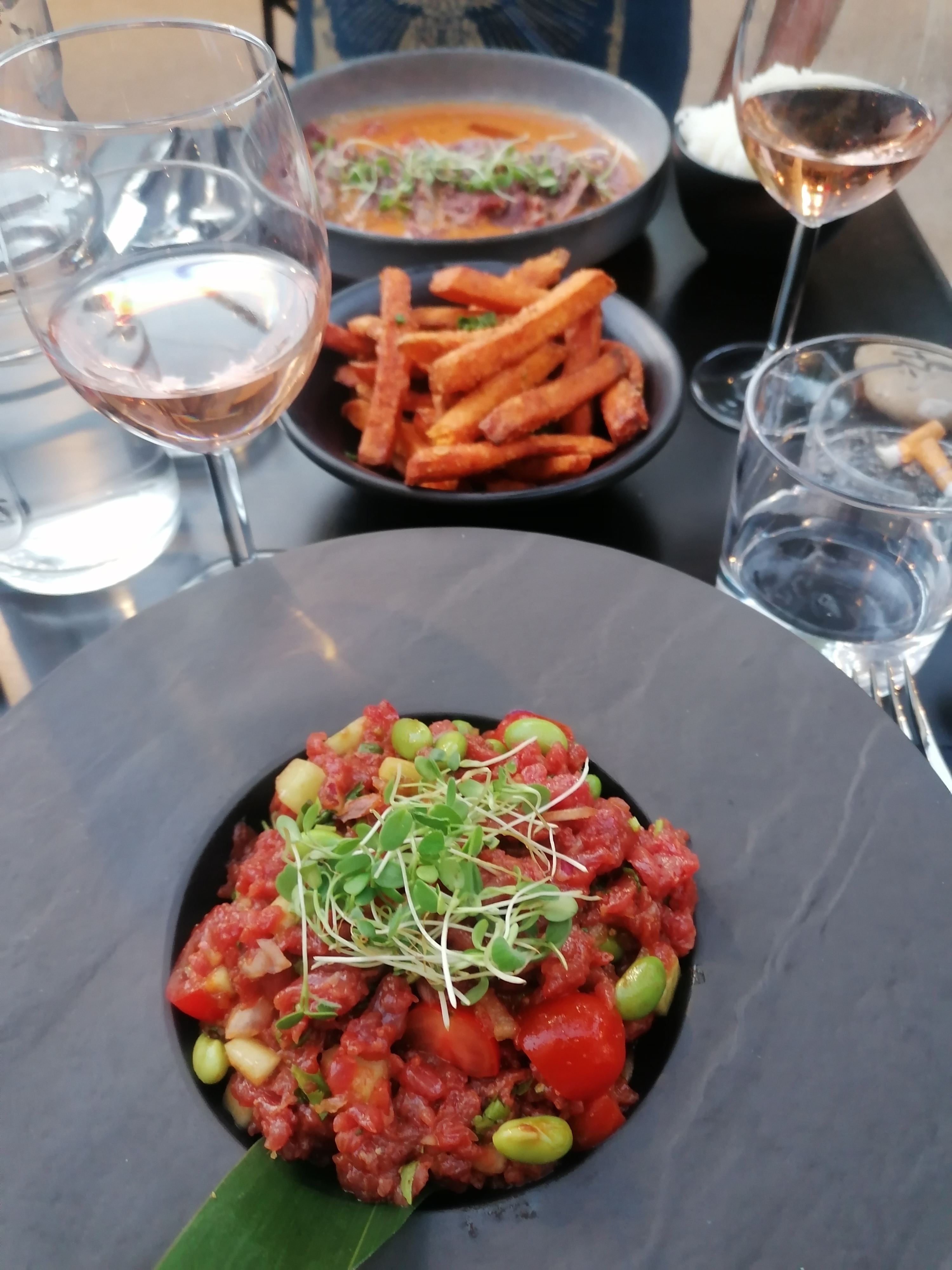 Nous sommes passés devant le restaurant et l’odeur nous a tout de suite convaincu. Les serveuses nous ont gentiment installé en terrasse avec notre chien, malgré que nous sommes arrivés 13:45 et que la cuisine allait bientôt fermer. Nous avons pris les tacos, le beignets de crevettes, tartare de thon, curry rouge et pavlova en dessert. Tout était absolument EXCELLENT ! On recommande vivement et comptons revenir très vite avec des amis !
