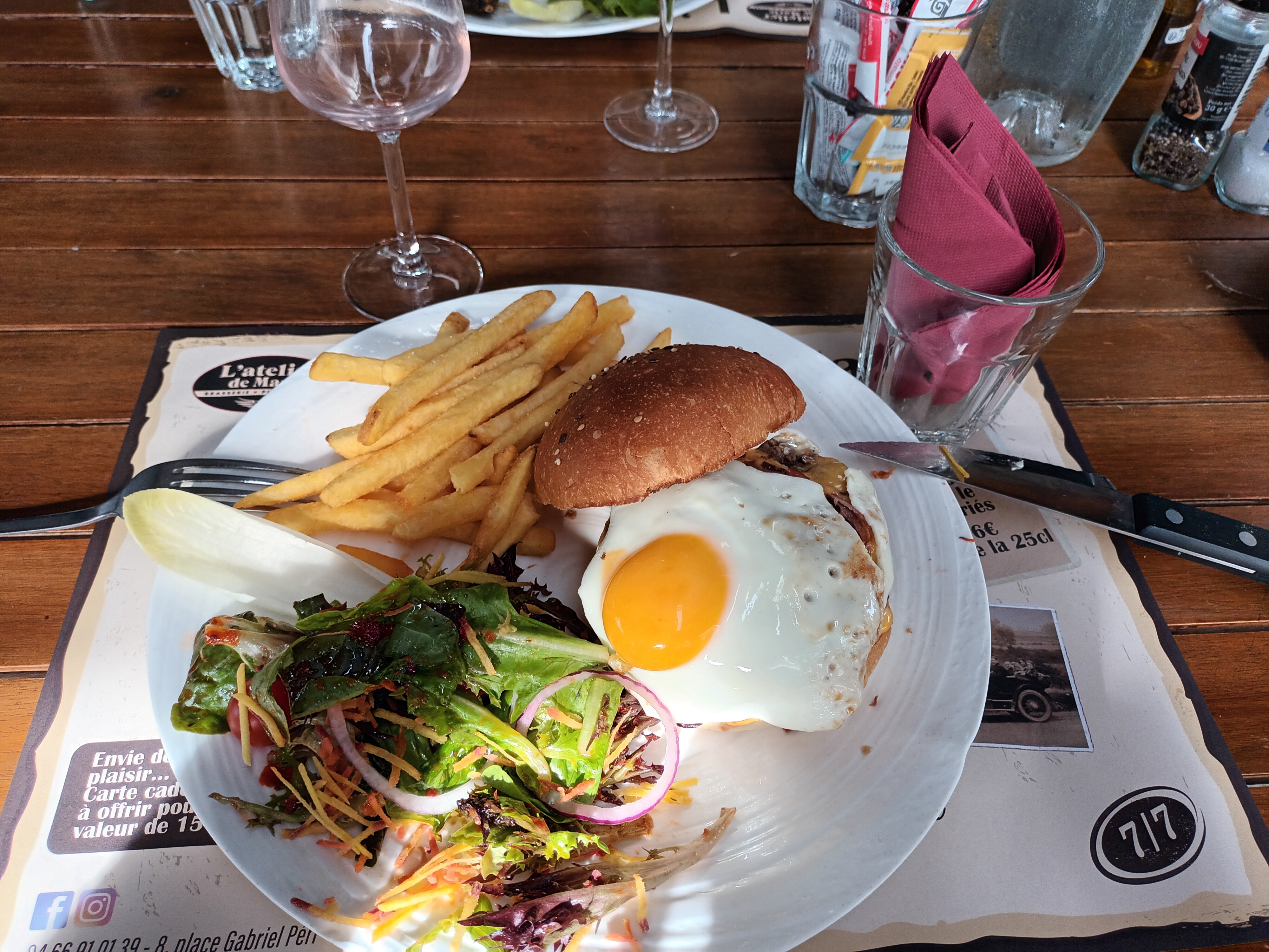 La patronne est très agréable, les serveuses souriantes. Menu hamburger et un tiramisu fruits rouges. Pour le prix rien à redire même si j'aurai aimé plus de salade verte. Mais c'est vraiment chipoter pour rien. Prise de soleil ☀️ en terrasse rien à redire. Ne connaissant pas très bien Alès je trouve le concept sympathique et agréable lorsque l.on quitte la Lozère et son froid. Je recommande vivement et reviendrai sans problème.