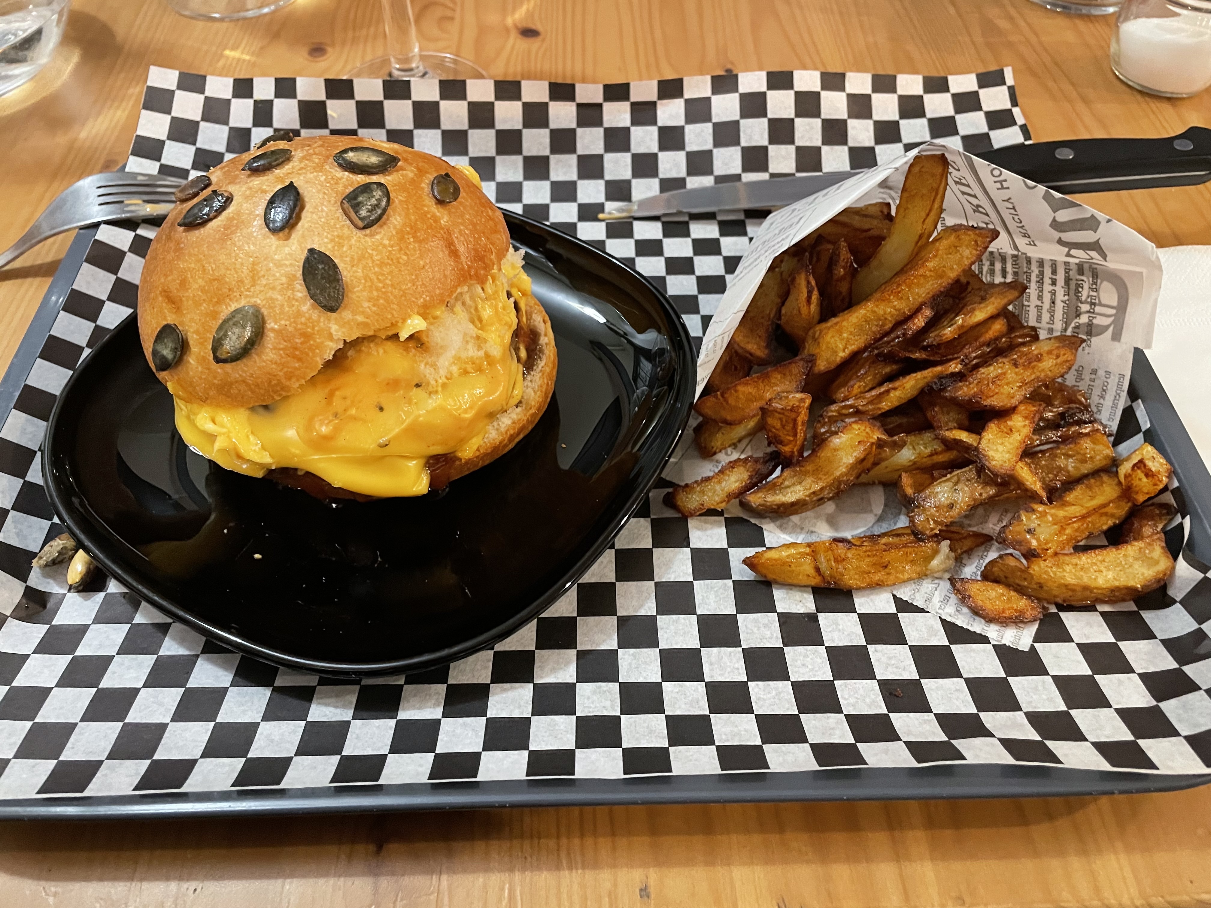 Frites et Burger excellents, accueil fort sympathique de la Cheffe et du serveur avec une salle et terrasse pleines, je recommande !