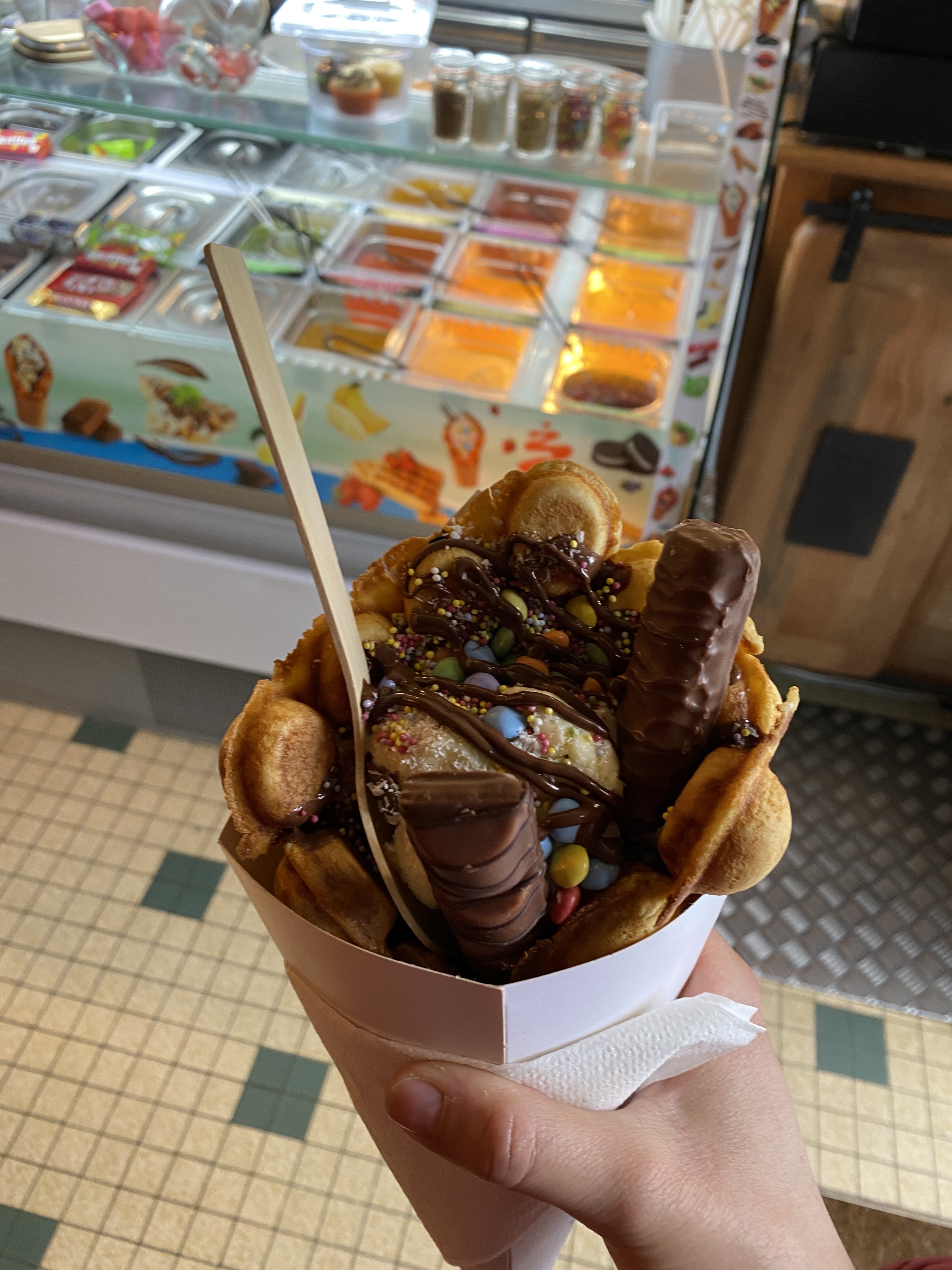Nous y sommes allés avec mes loulous cet après -midi. Nous nous sommes régalés. Personnes très accueillantes. De l'attente certes mais voilà les gaufres sont cuites minutes et pour les versions avec la glace, elle les laisse bien refroidir avant de la garnir. Les prix sont abordables. Ma fille a pris un bubble tea, elle a adoré. Je recommande.