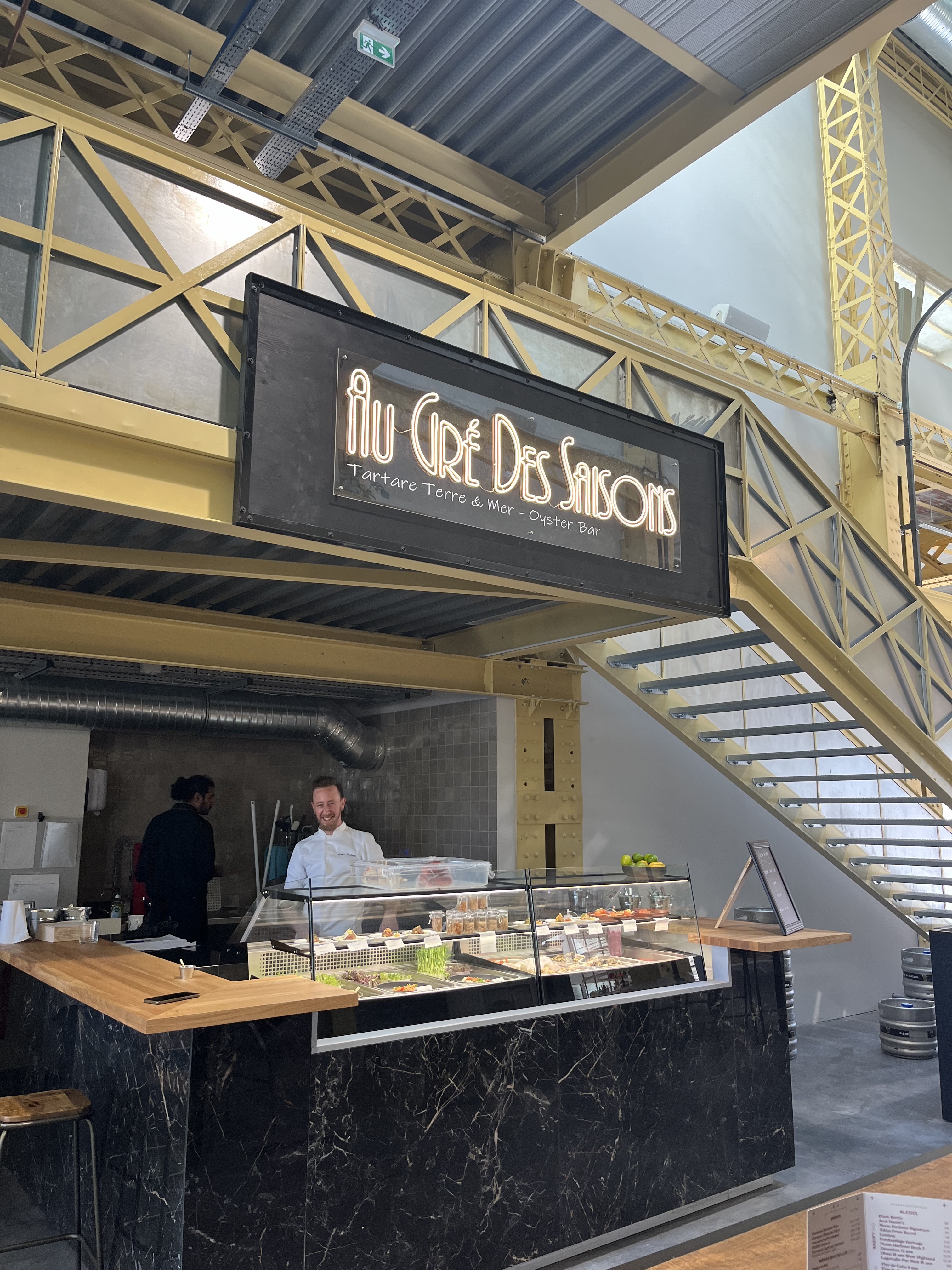 Lieu très agréable. Le côté industriel et les citernes donnent un esprit new yorkais dépaysant. La possibilité de choisir des plats un peu partout est distrayante et permet à chacun de choisir selon ses goûts. Le bar Pépin est très convivial avec un choix de vins très sympa . Adresse à retenir sans modération