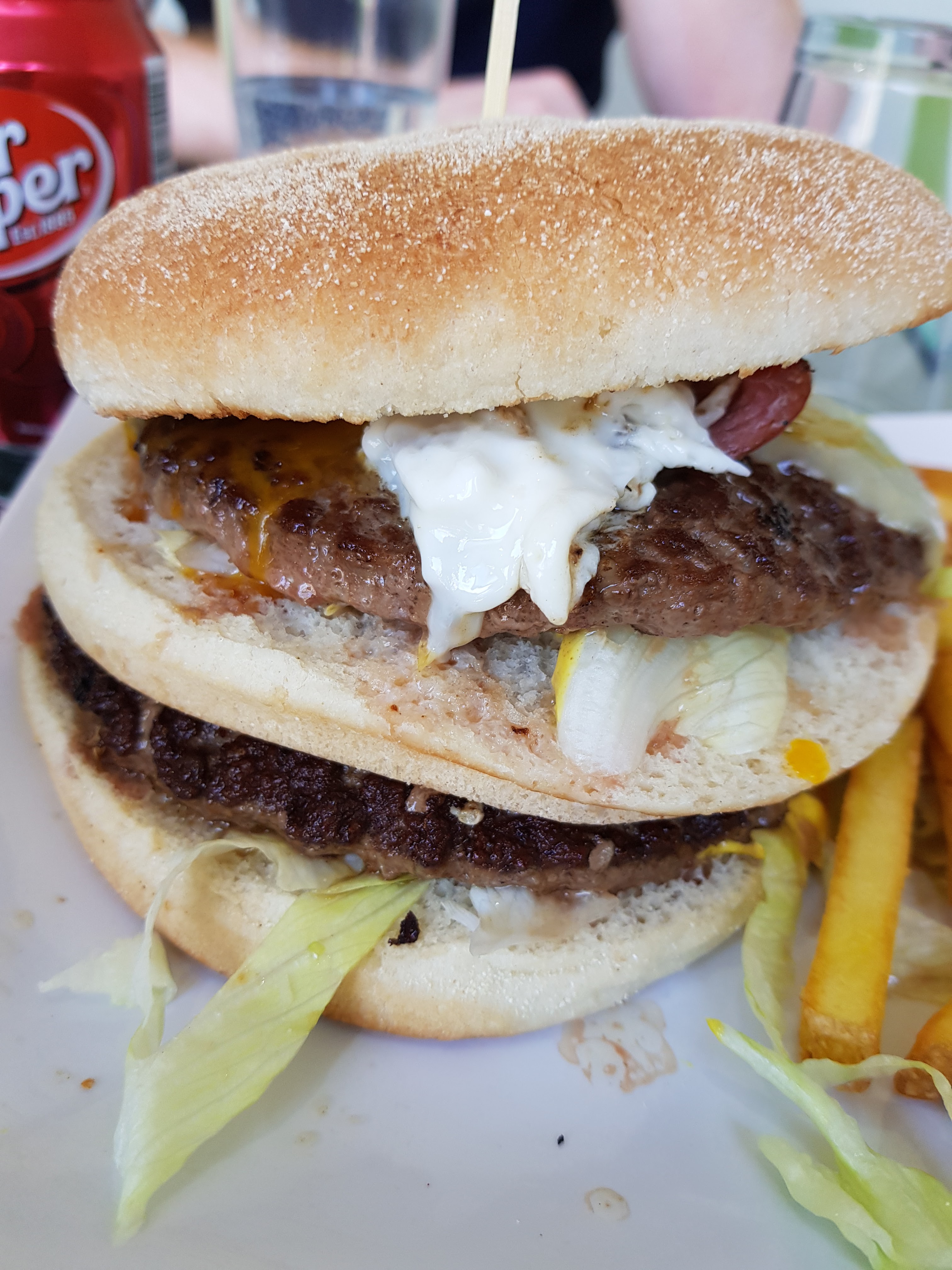 Oubliez mac Donald ! ( le plus petit burger est nommé 180, mais démesuré par rapport au 280 de chez son concurrent.) Frites et sauces à volonté. Un personnel aux petits soins !