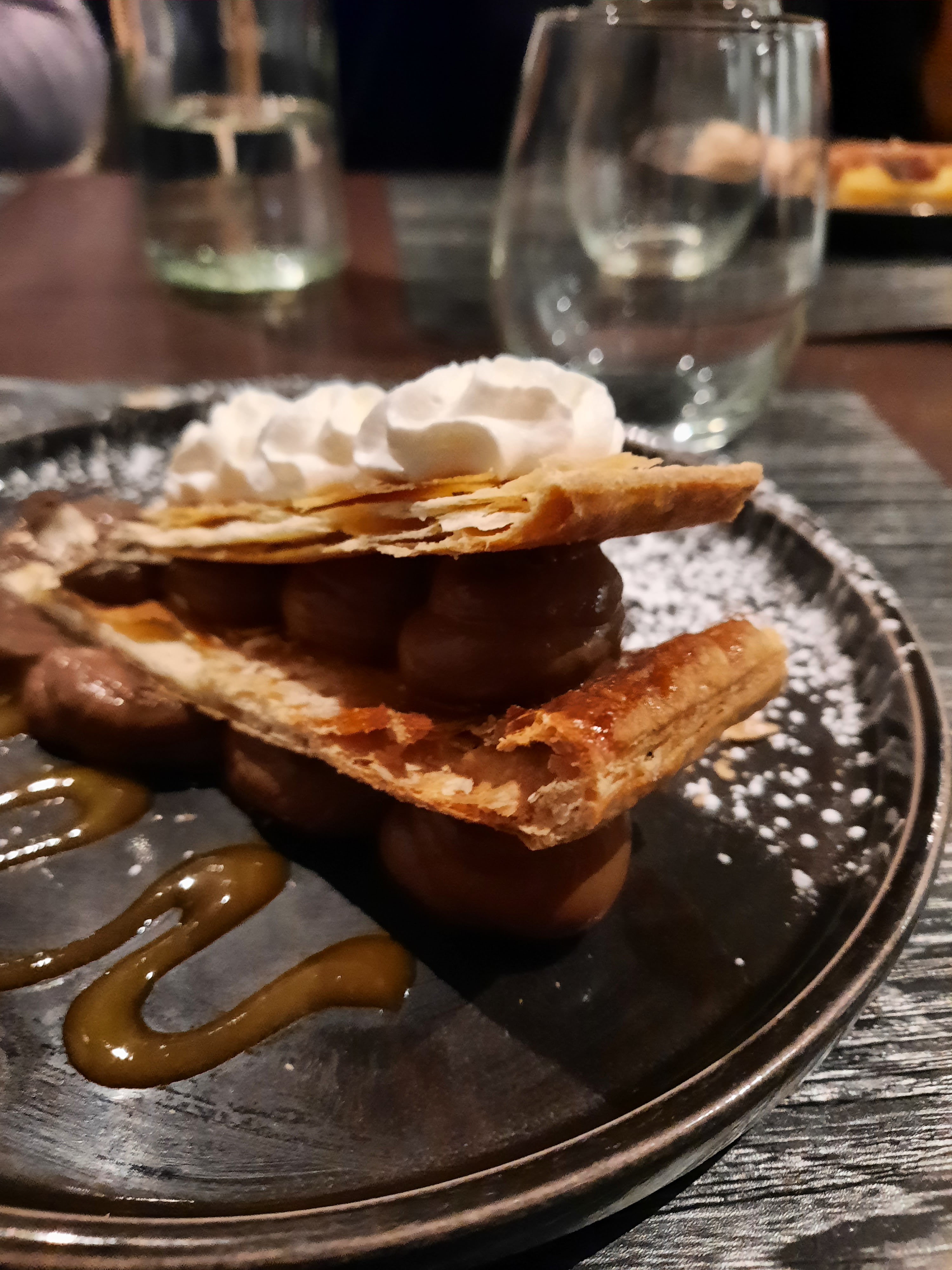 Les plats étaient très bons, on a pris un Tartare d'espadon et un filet mignon de cerf et on s'est régalé !! Au dessert on a pris une Crème brulée au praliné noisette et c'était la plus bonne crème brulée qu'on a mangé ! Très bonne découverte !