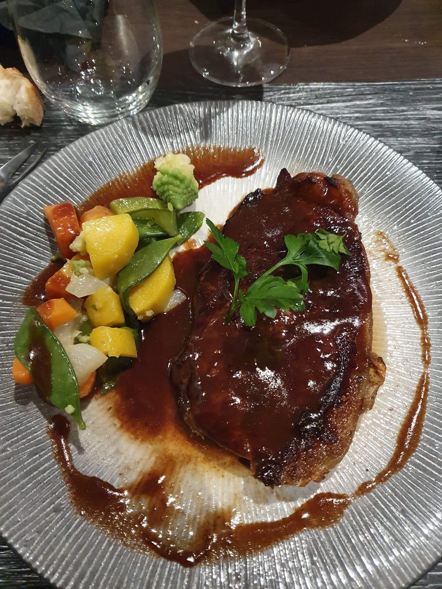 Très bon moment... Bon acceuil, serveuse souriante, serveur (patron?) sympa et de bons conseils.. Carte simple (souvent indicatrice de produits frais), mais complète... Cuisine savoureuse et tres copieuse, autant le porc ibérique que la basse cote angus !! Peut être un prix un élevé à la vue du menu, mais si on compare avec d'autres établissements, y a pas photo : produits frais et bien cuisinés, ce n'est pas l'usine, carte renouvelée, finalement, ce n'est pas si cher.. A refaire ...