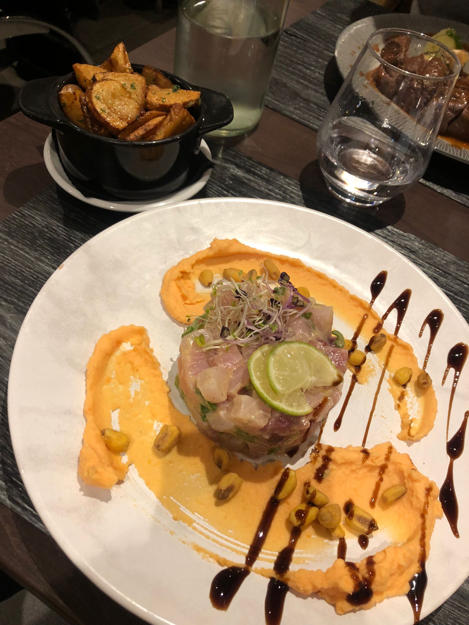 Excellent ! De l’entrée au dessert en passant par le vin, tout était succulent ! La viande est à tomber par terre, le ceviche de gambas est un délice, la charcuterie est fine et raffiné. Tout cela avec des produits frais. Le serveur était adorable et le service impeccable je recommande à 1000% !