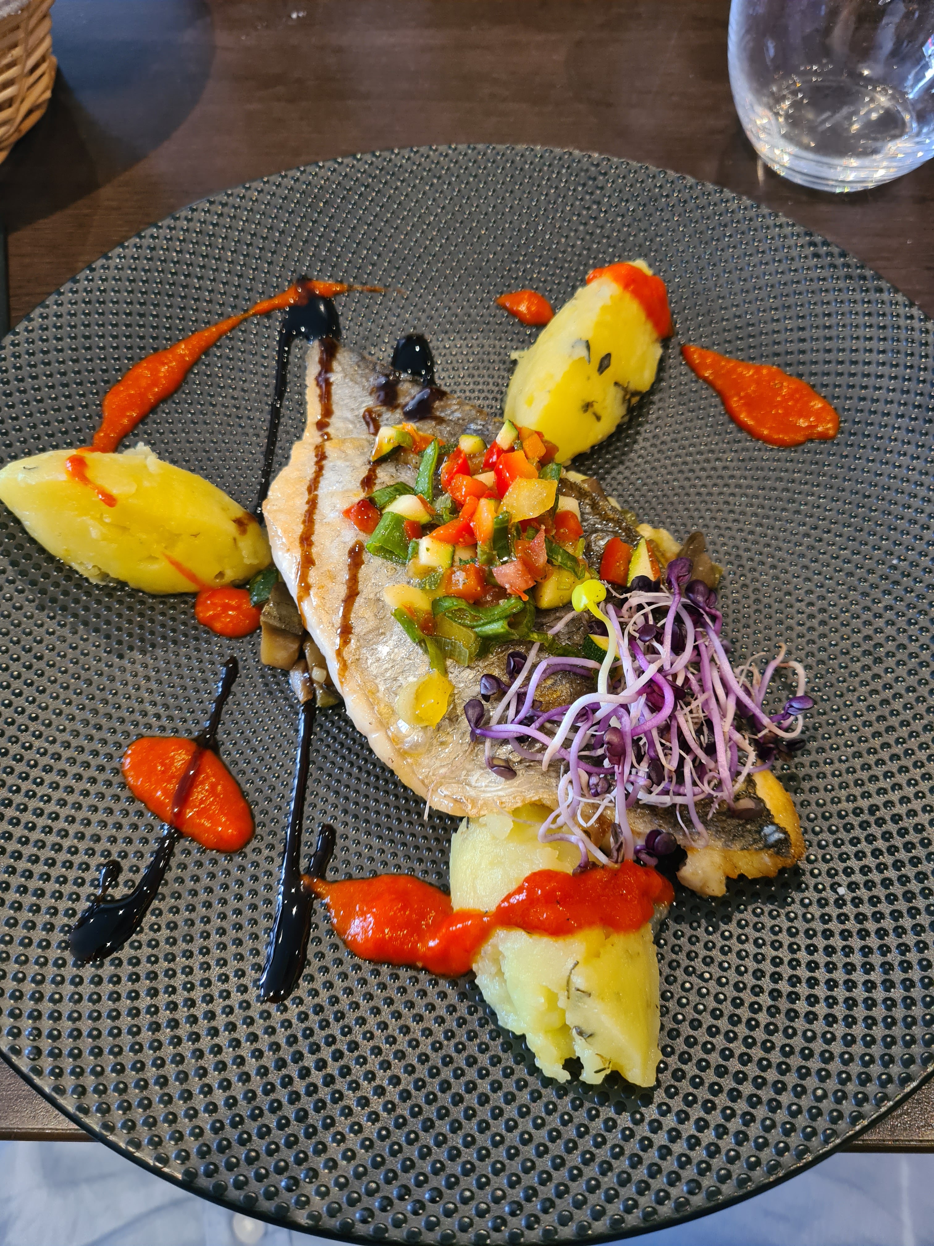 Une cuisine très bonne et raffinée et service agréable. Tout petit bémol sur la quantité d’huile d’olive avec les gambas un peu trop importante à mon goût mais c’est vraiment pour chipoter !