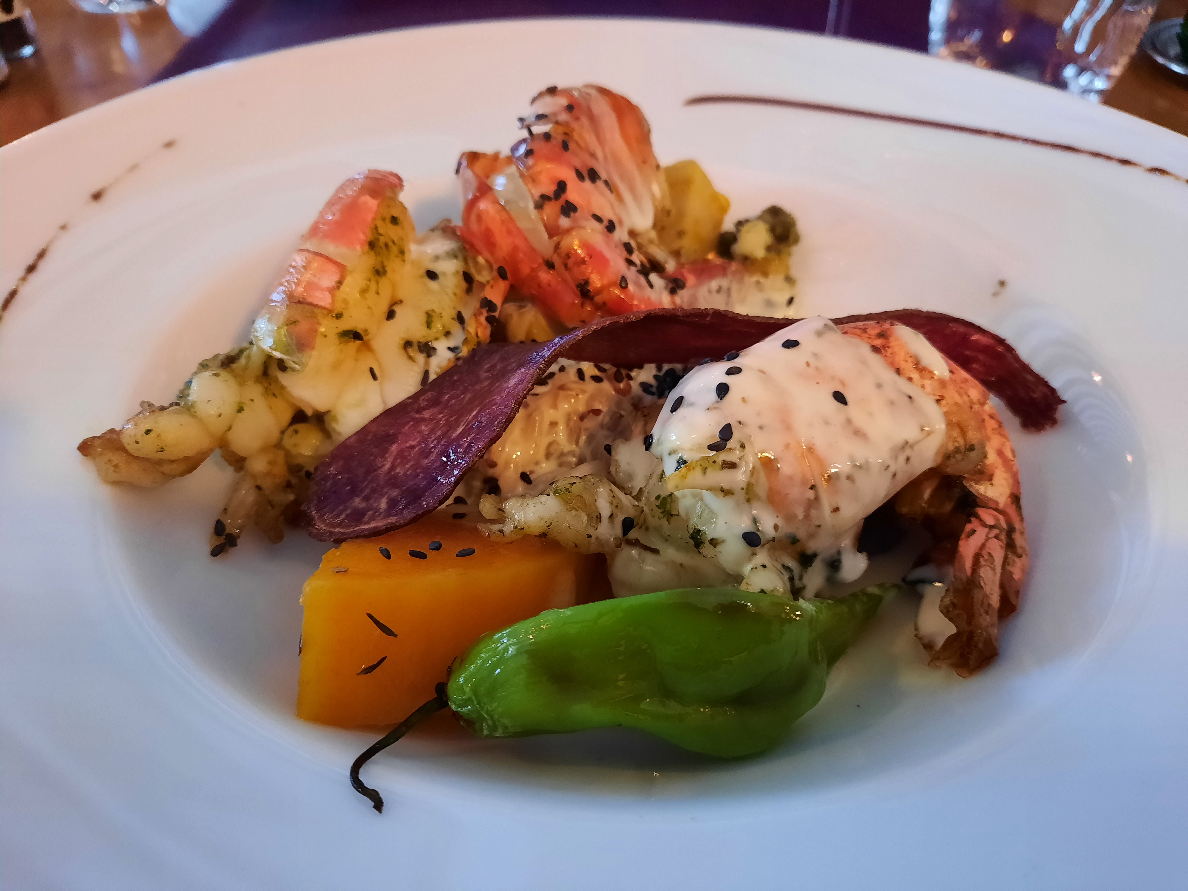 Jai pris les samoussas de langouste et sa crème verte en entrée et certains étaient encore froids à l'intérieur... pour les autres samoussas cétait correct. En plat jai pris le dos de légine, cétait du classique, rien d'extra, et ça manquait de goût selon moi. Le pain était bon.