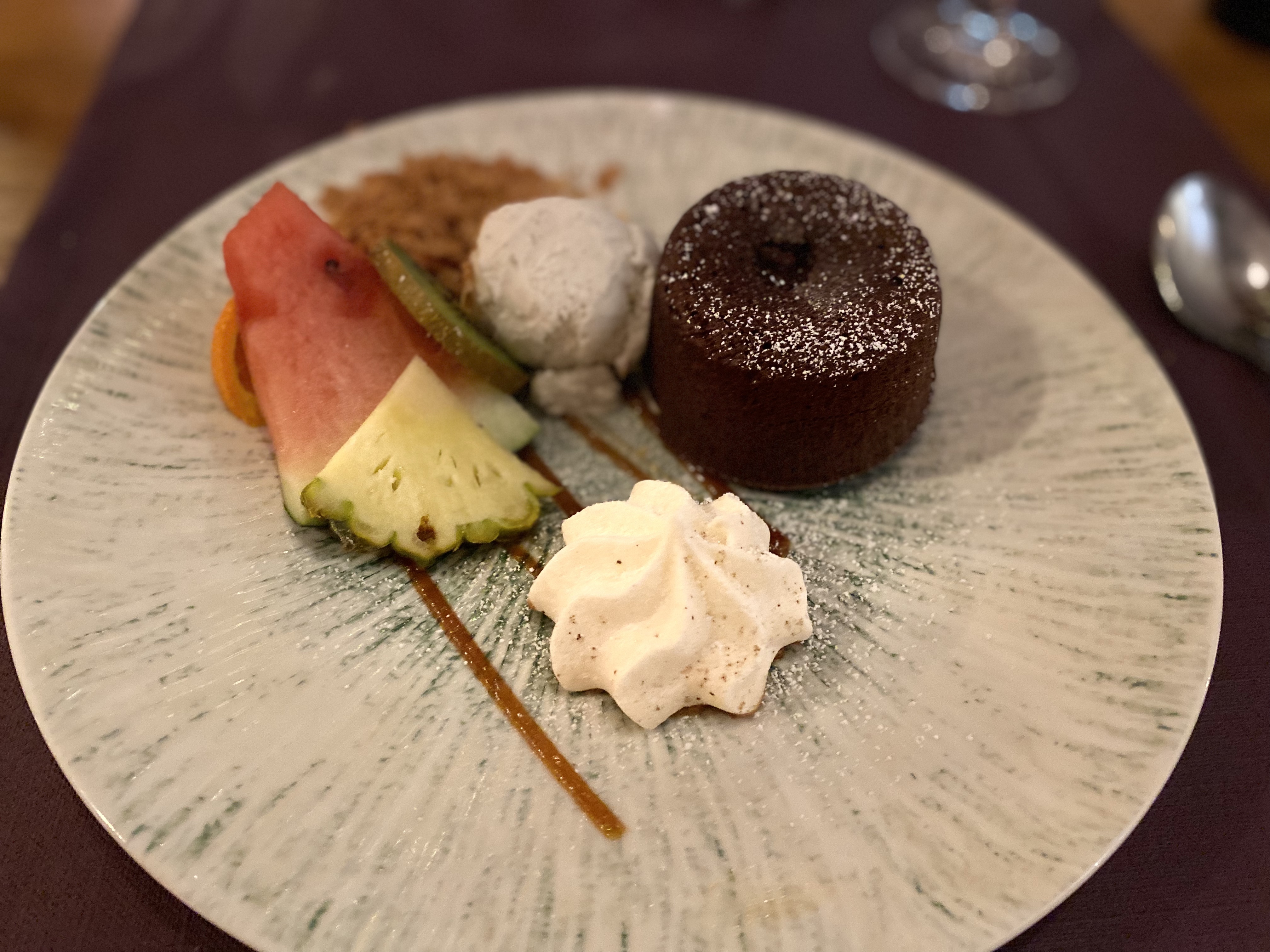 Tout était délicieux de l’entrée au dessert (coulant au chocolat incroyable) !