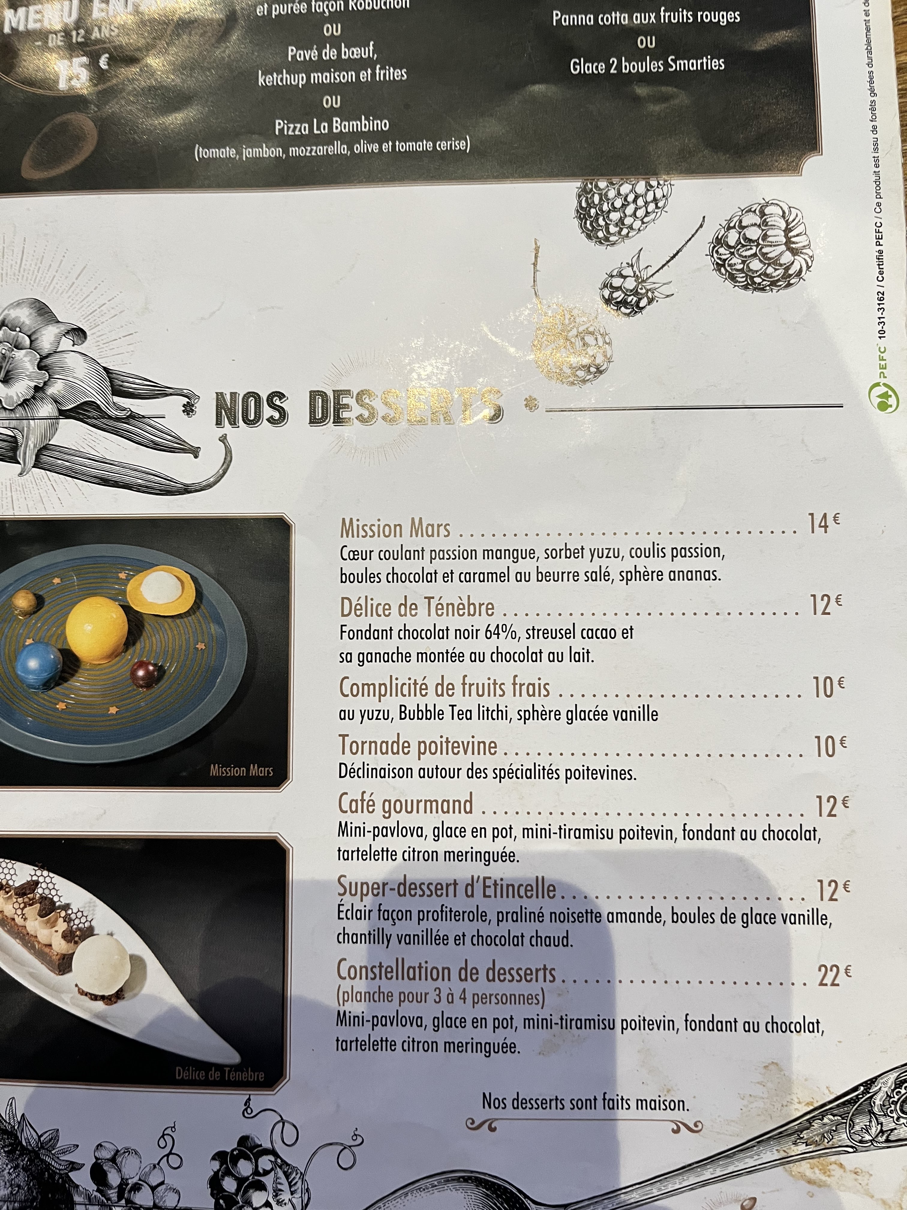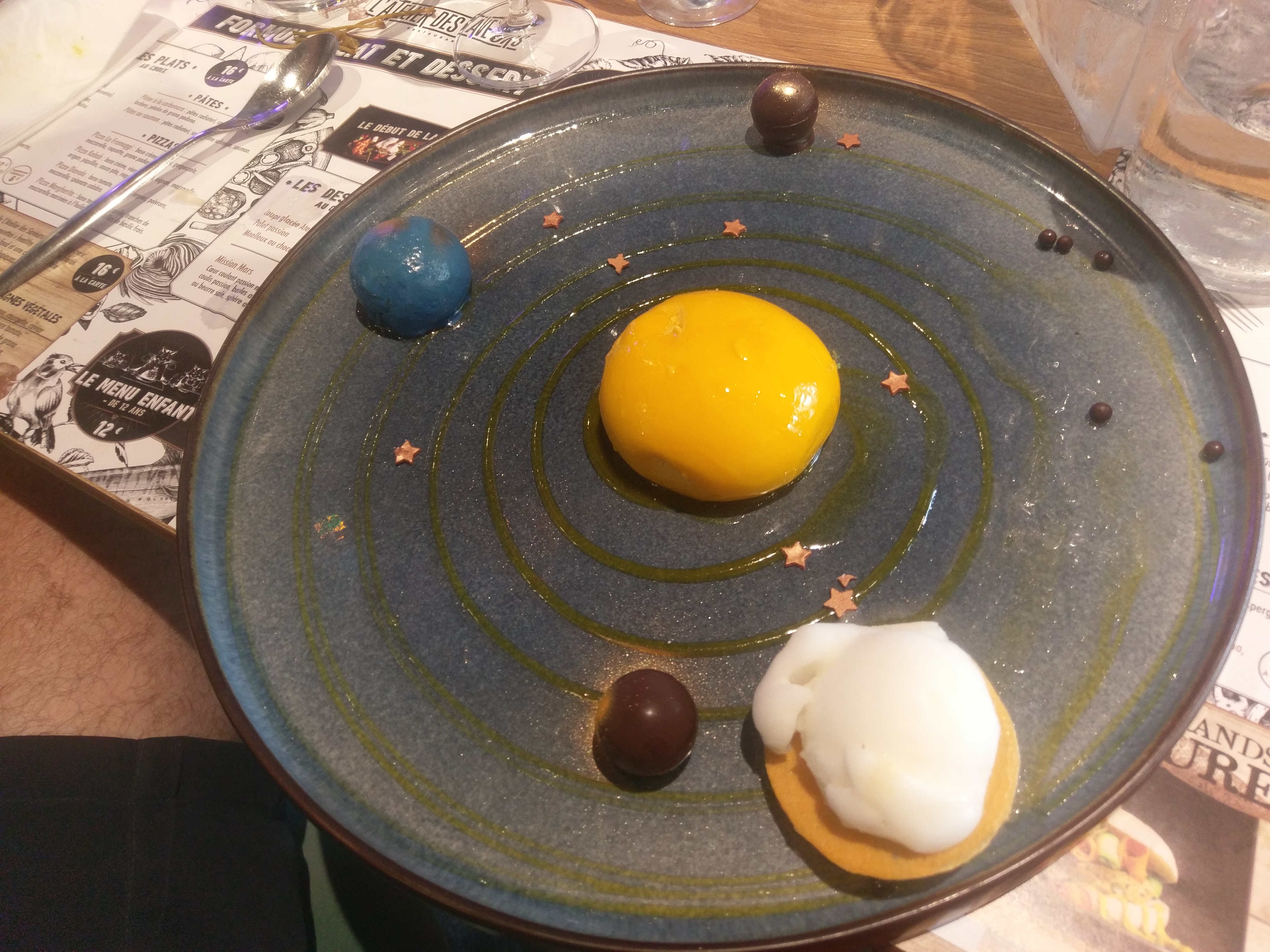 Super belle découverte. Ce restau fut une belle surprise. Nous y avons dîner avec nos enfants lors de notre séjour au futuroscope. Nous ne nous attendions pas à un restaurant d'aussi bonne qualité dans un parc d attractions. Les plats sont copieux et bons. Le menu enfant est très bien. Les desserts sont bons et beaux. Mention spéciale pour le dessert Mission Mars (cf. Photo). Le serveur qui s'occupait de notre table était sympa, accueillant et blagueur avec les enfants. Service impeccable.