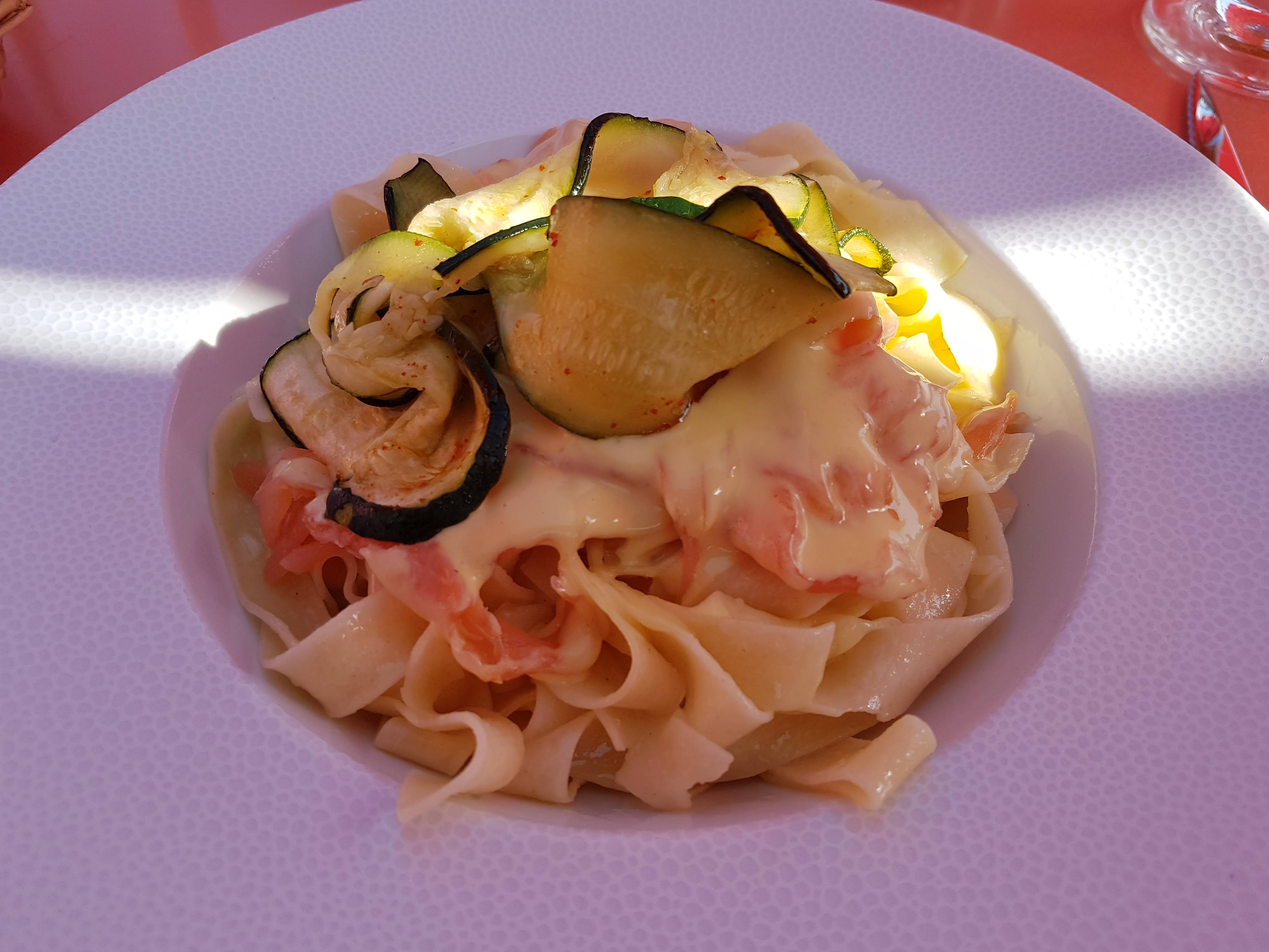 on a adoré ! alors oui on a pris les entrées et plats spécifiques au restaurant (pas les pâtes/pizza/salade œuf) qui sont un peu plus chers - mais ça valait carrément le coup! La mousse céleri- vanille avec les saint Jacques est à tomber, le ramen des légumes exceptionnel !! les décors dans la salle sont travailles et on a été servis même pas en 15 minutes le soir (resto plein). on recommande vraiment.