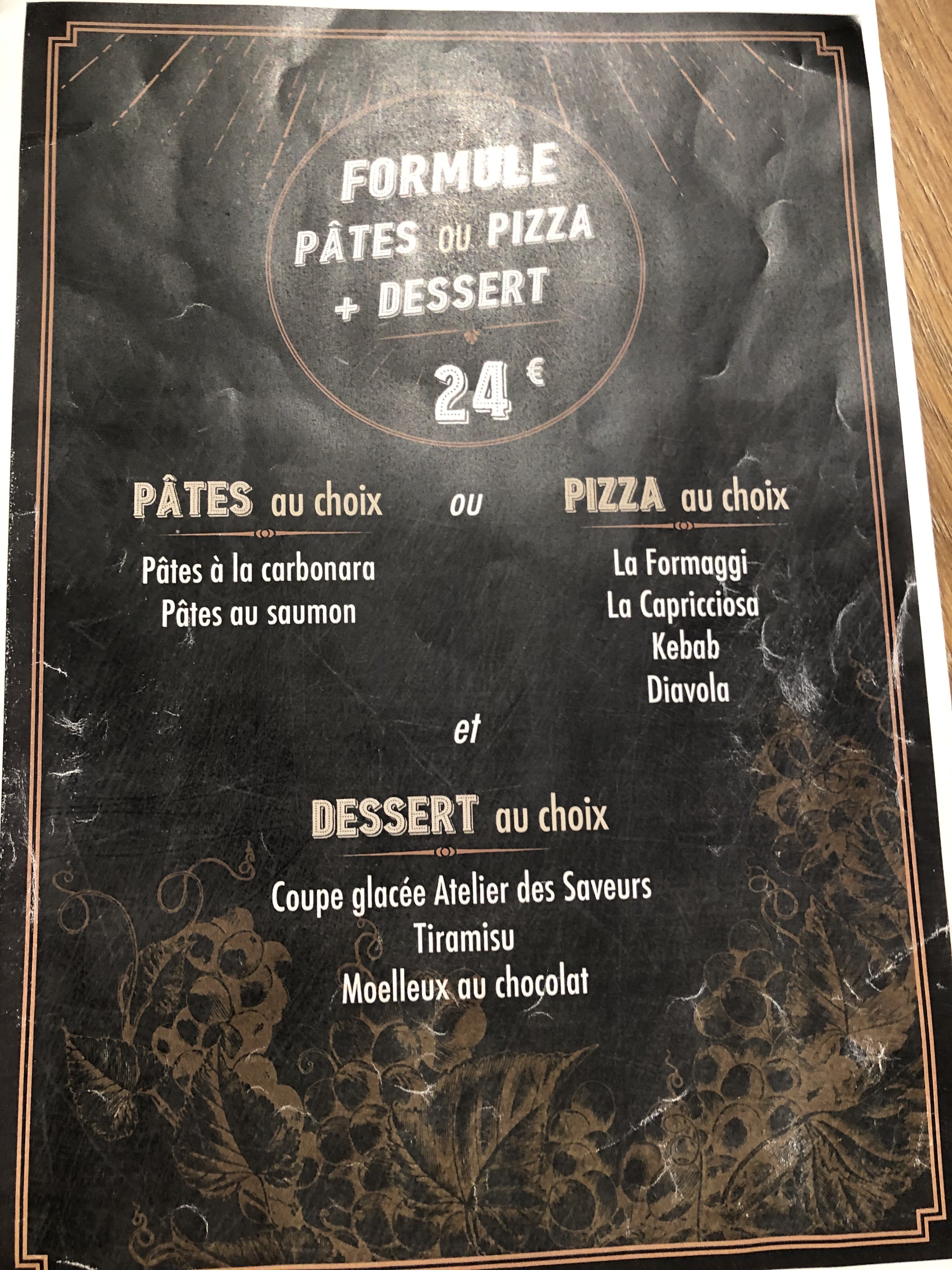 Grosse déception sur les pizzas, la pâte était extrêmement dure. J'en fais la remarque a la serveuse, elle me répond qu'en ce moment ils ont des soucis avec la pâte à pizzas et qu'en plus j'avais un vieux couteau 😳. Au prix du menu 29.90€ avec le dessert j'espérai mieux. Les pâtes carbonaras quant à elles étaient bonnes.