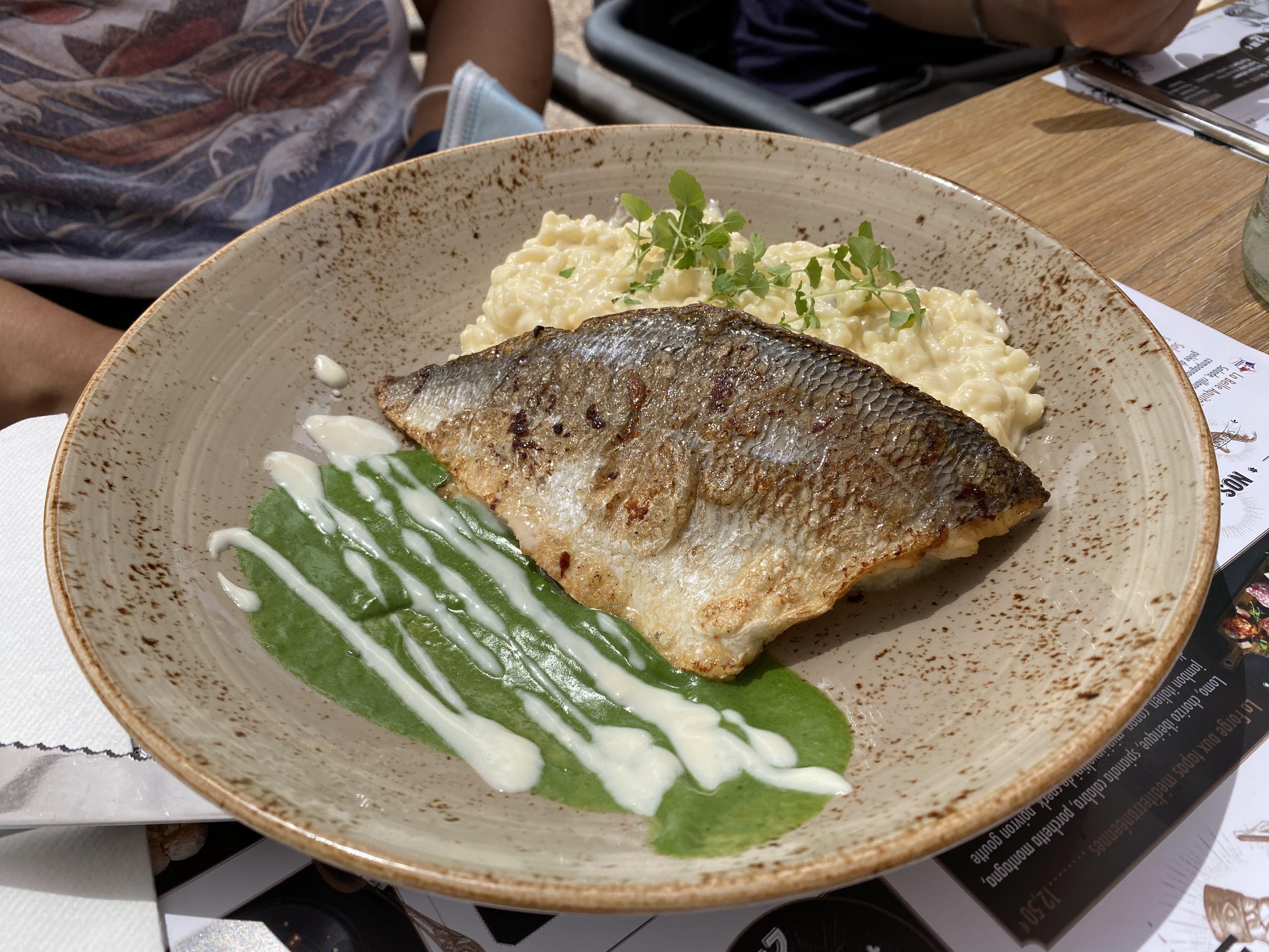 Pour ma part le prix du plat un peu excessif 17euros les pâtes au saumon et saumon beaucoup trop cuit ,très dur et a dû sûrement être réchauffé,il était inmangeable.En revanche le tiramisu était bon et le décor sympa.Serveur au top.