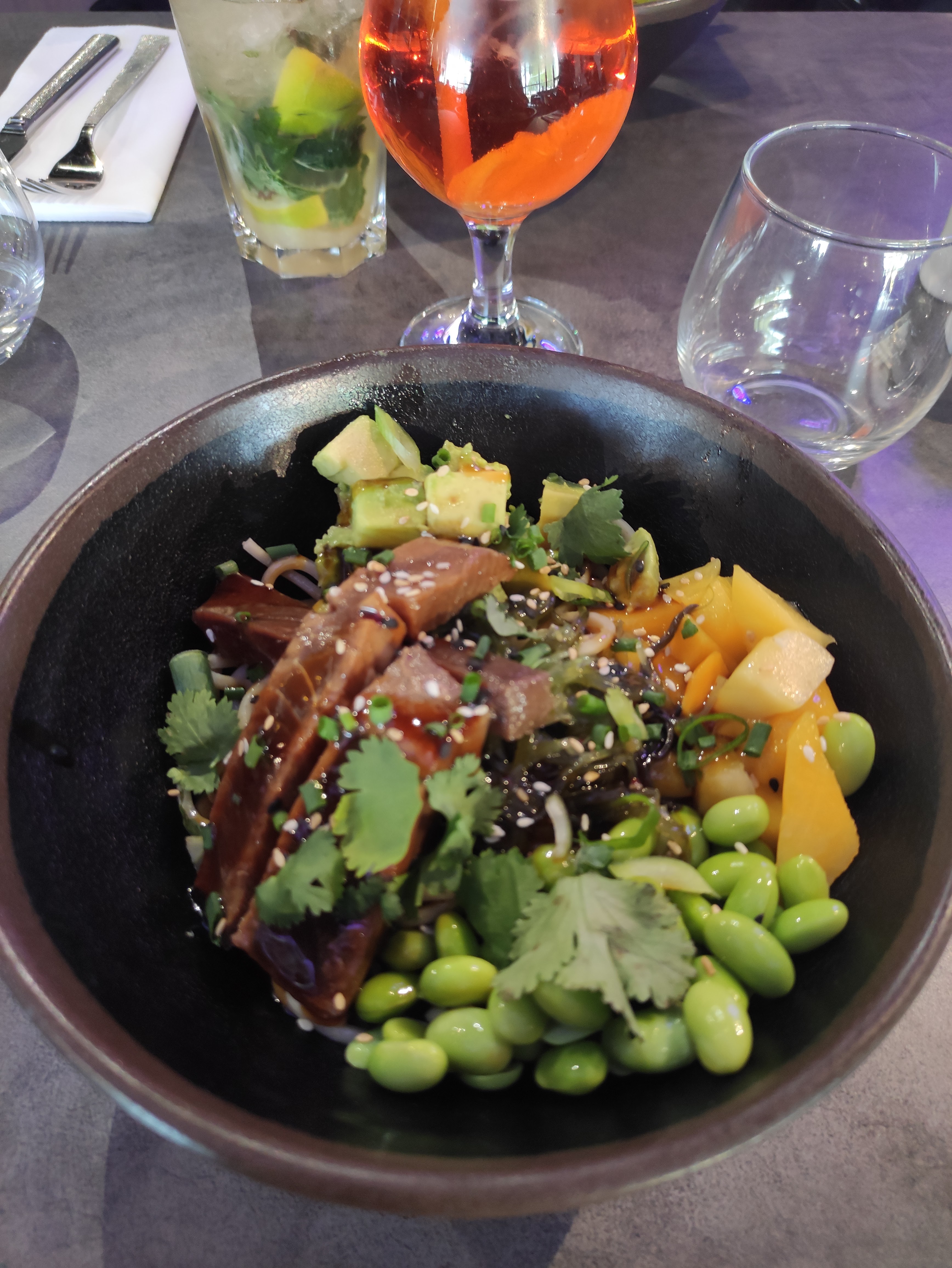 Un régal ! J'ai choisi le poke bowl : une tuerie ! Je me suis régalée ! Bravo à l'équipe cuisine. Et merci à l'équipe de salle qui assure un service de qualité. Je n'en ai pas profité mais j'ai remarqué qu'un effort était pour proposer un menu enfant de qualité, c'est bon à savoir pour plus tard. Cadre sympathique.