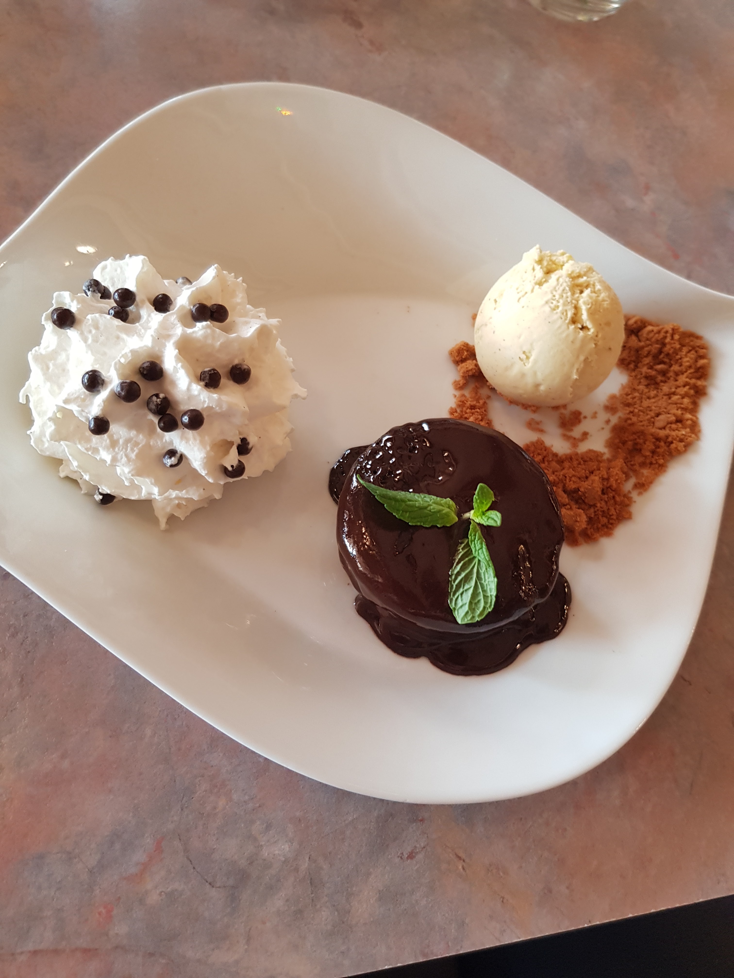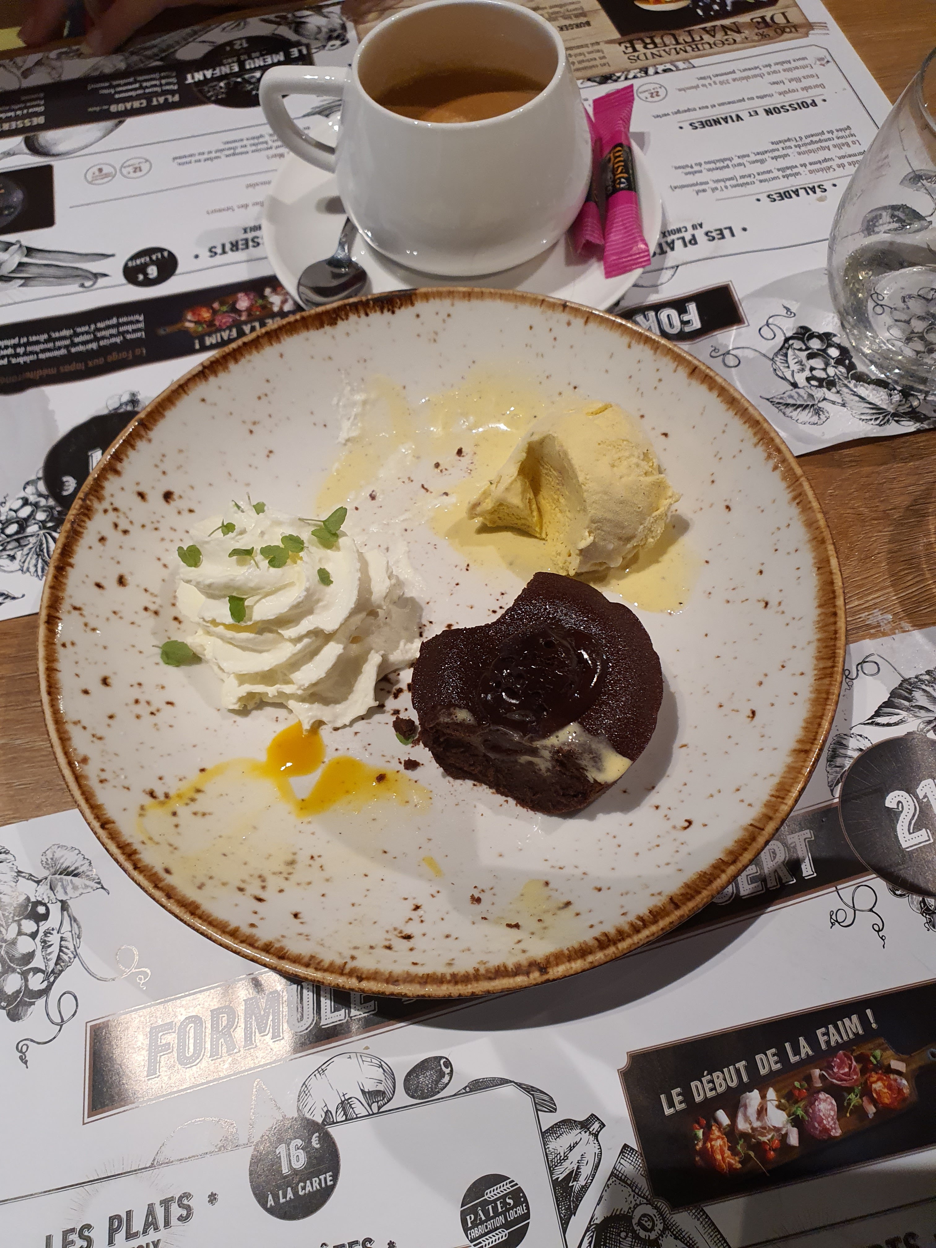 Rapport qualité prix n'est pas au rendez-vous. 27.10€ pour 1 pizza (pas très garnie) un moelleux au chocolat et un jus de fruits
