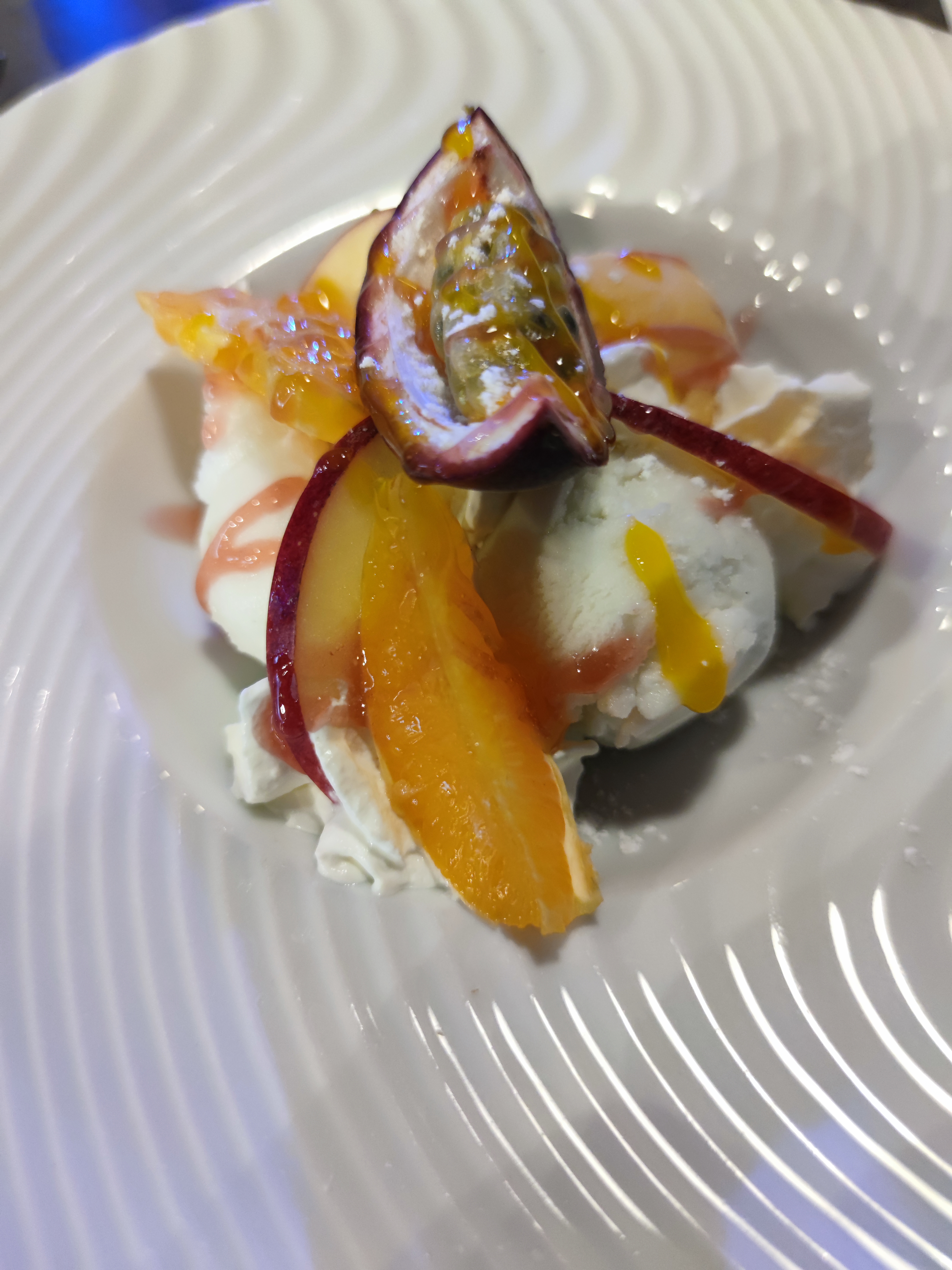 Spritz, pâtes au saumons différents tel que saumon fumés, saumon cuit curry et saumon mi cuit, un pur délice et pour finir touche fraîcheur avec délice de glaces fruits, serveurs très gentils, merci pour l'accueil, rapport qualité prix plus que raisonnable surtout pour un restaurant dans un parc d'attractions, surpris agréablement 😊