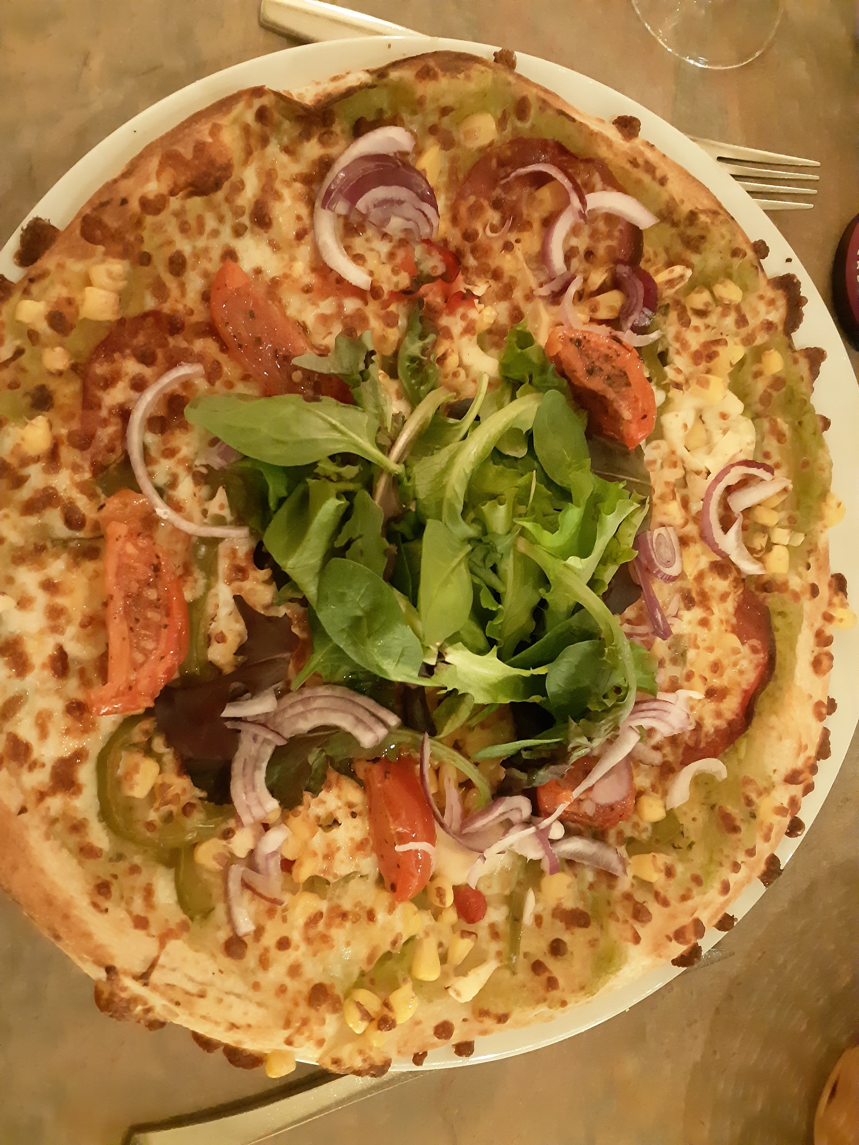 Pas grand chose d'ouvert sur le parc en soirée ce début mai. Ce restaurant est plutôt une bonne surprise avec ses pizzas hors du commun, dont cette ensoleillée avec base guacamole et épicée juste comme il faut. Ne pas louper le vin rouge AOC Haut Poitou... le régional de l'étape à 16 euros la bouteille