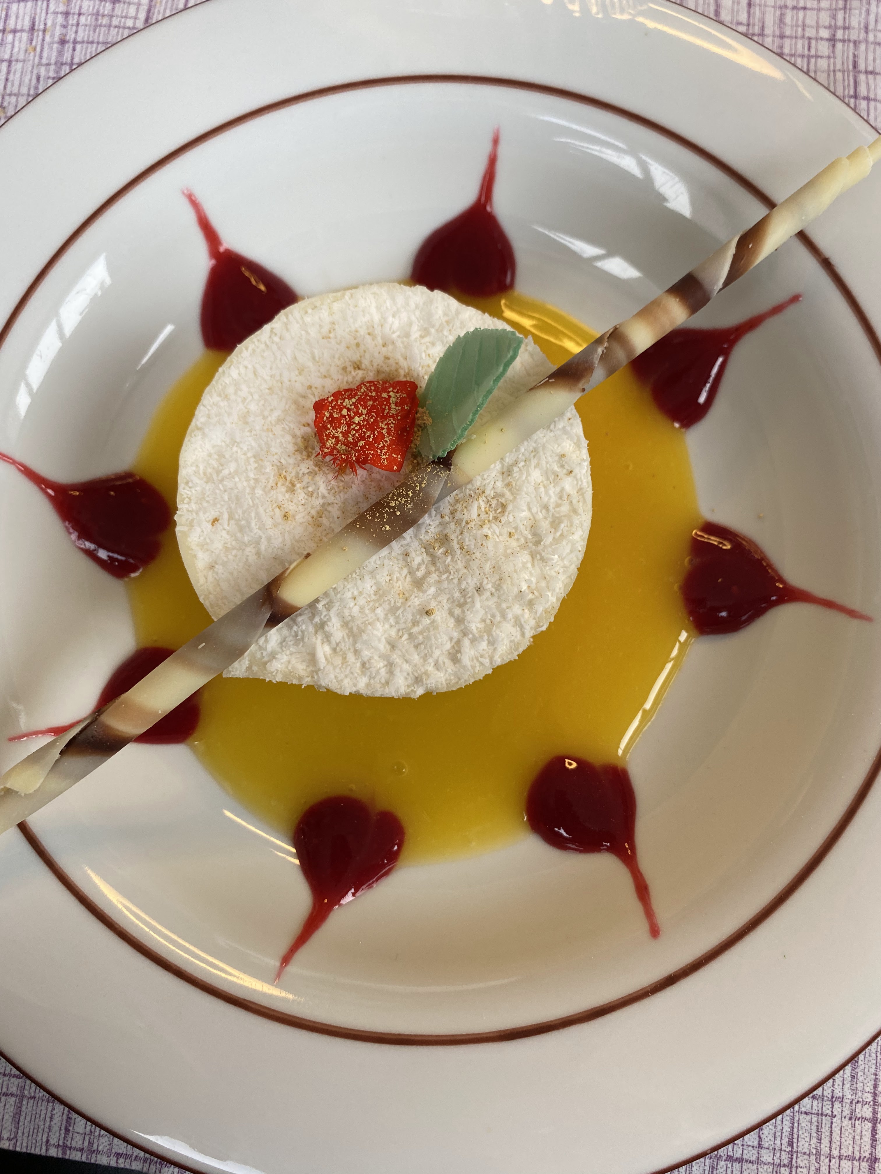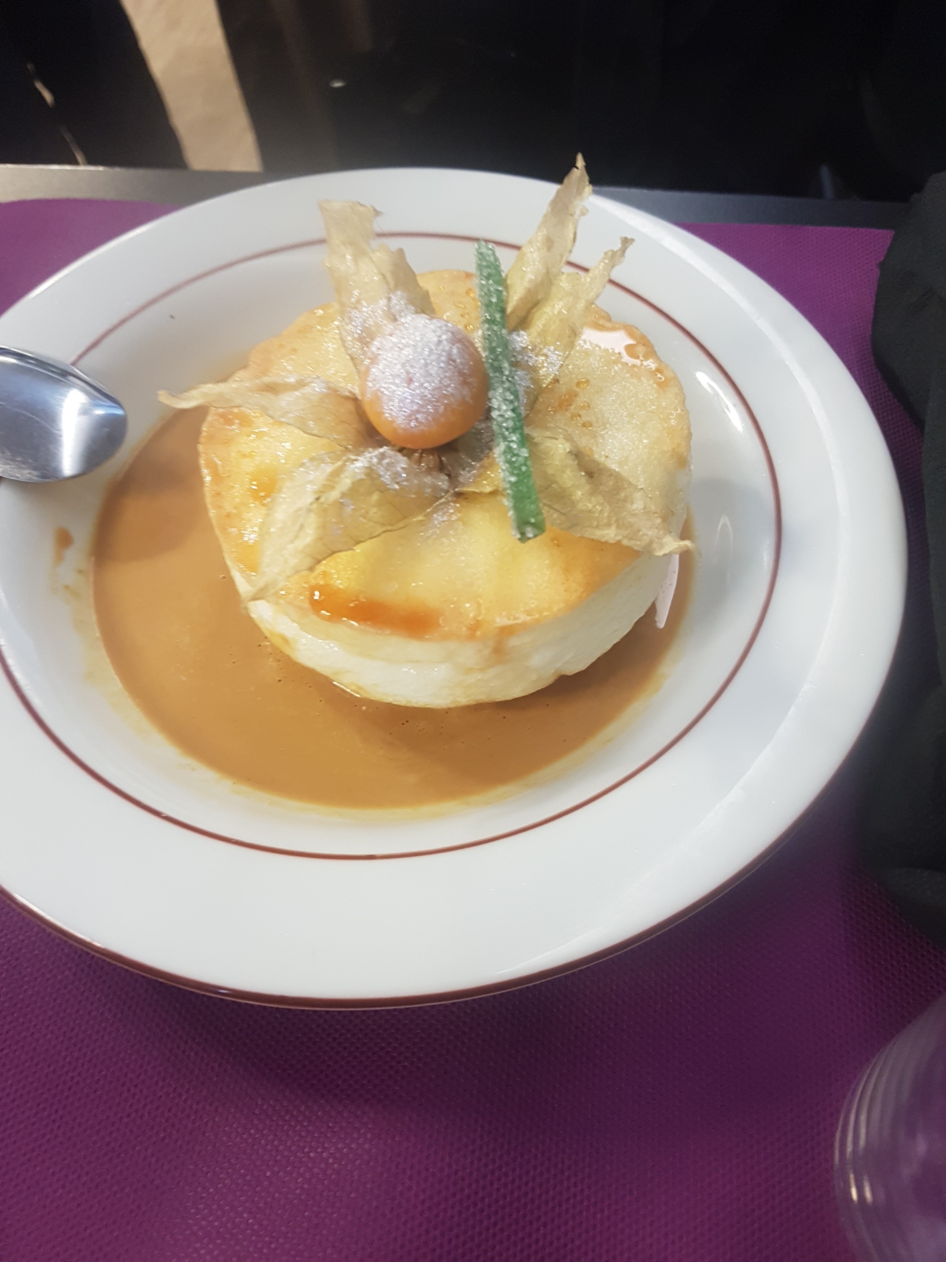Eh bien ! Déçus par la présentation du plat de résistance et son contenu ( ris de veau ) Le dessert : île flottante énorme et très peu de crème…..