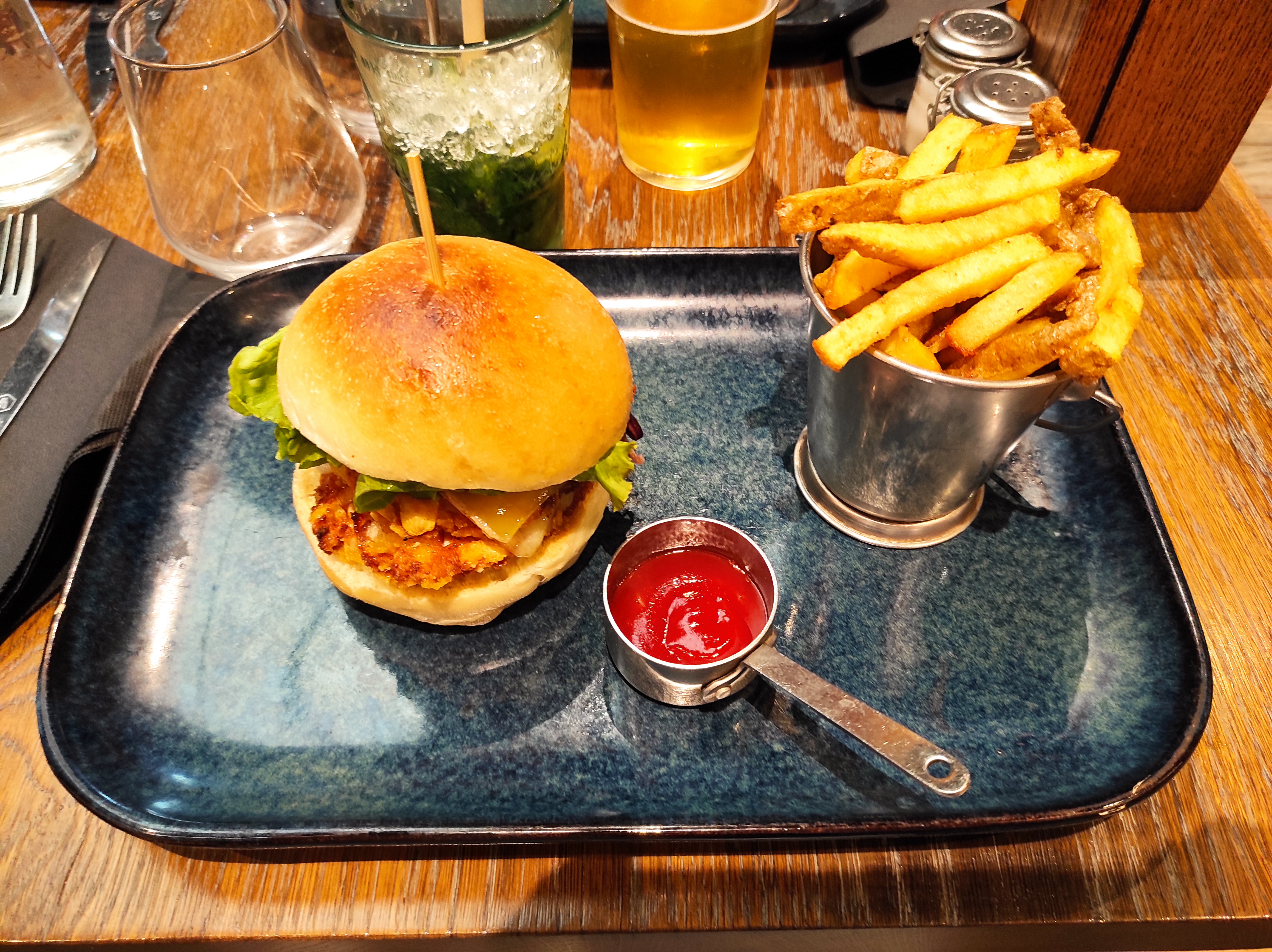 Très bon burger, service rapide, juste un accompagnement à l'apéro qui a manqué. Je recommande.