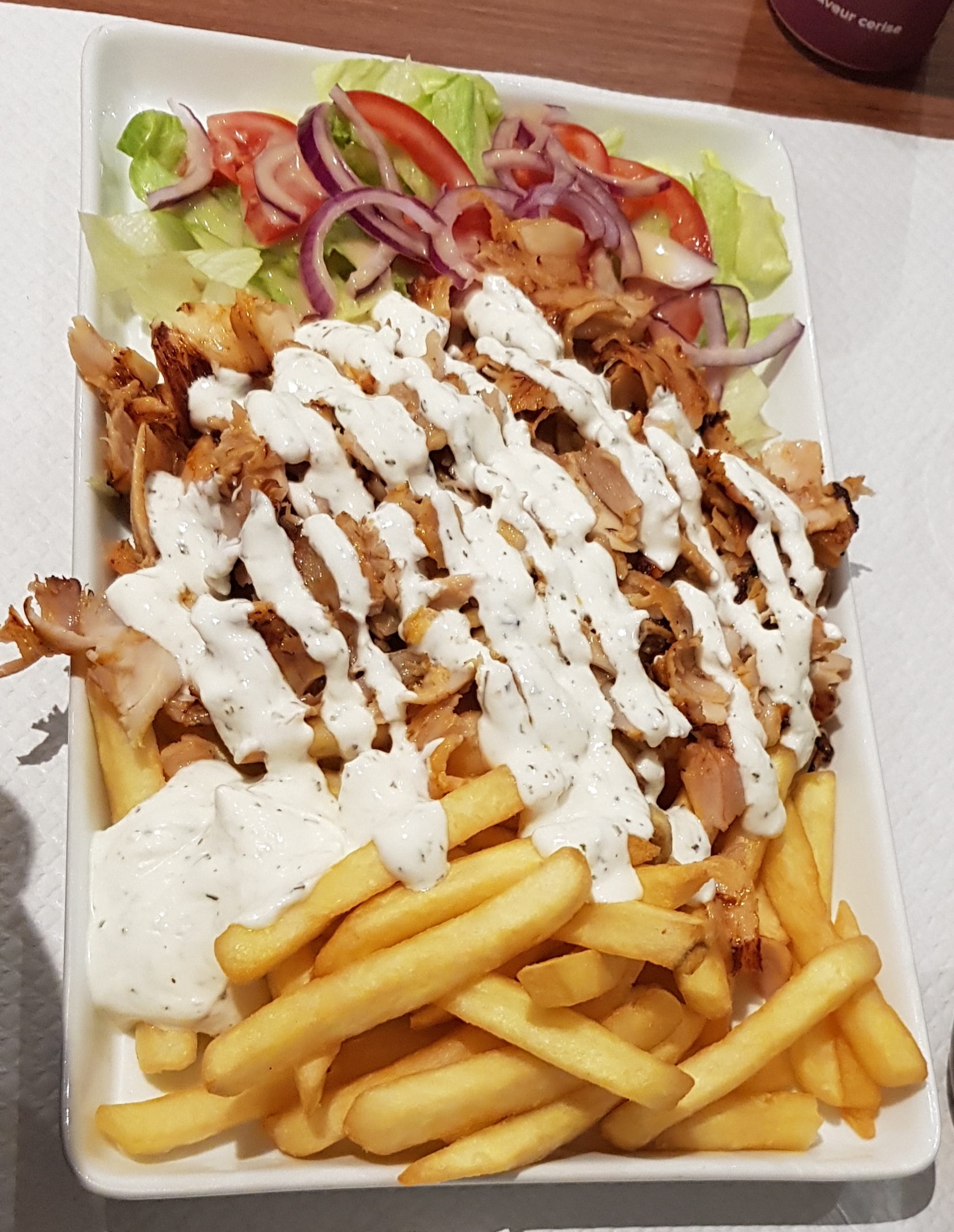 Un kebab, frites délicieux ! la serveuse très gentille, très souriante, Vite et bien servie! merci !!!
