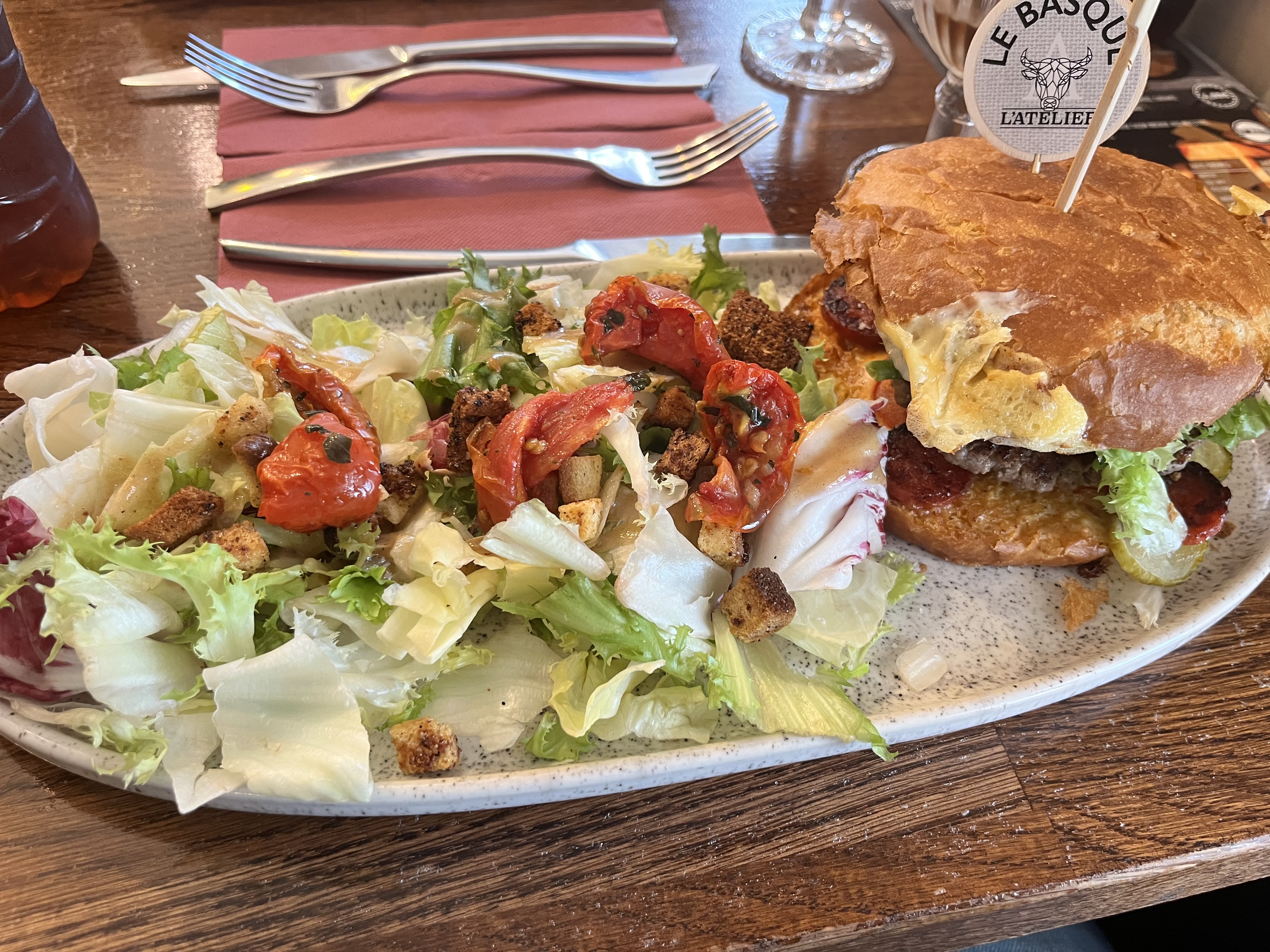Belle présentation, accueil très sympathique, il y a un moment que je voulais tenter ce resto. J'ai pris ''Le Basque'' en double viande. Visuellement, ca donne envie, mais je ne sais pas si c'est mon palais qui n'a pas detecter le chorizo ou même le safran, mais je n'ai pas eu de gout qui m'a fait vivre une expérience ''WHAOU''. Je n'aime pas rester sur une impression moyenne, alors je retenterai volontier