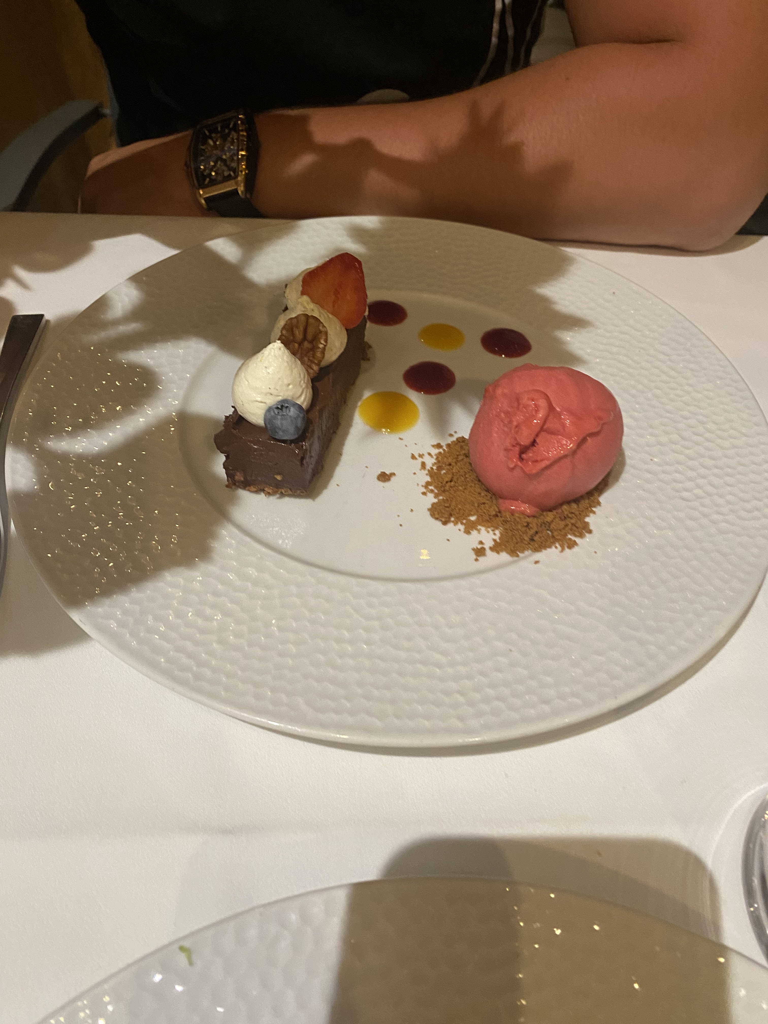 Absolument exceptionnel ! L'agneau était parfaitement cuit. La « pêche » au chocolat blanc était si intelligente et savoureuse. C'était un repas irréprochable.