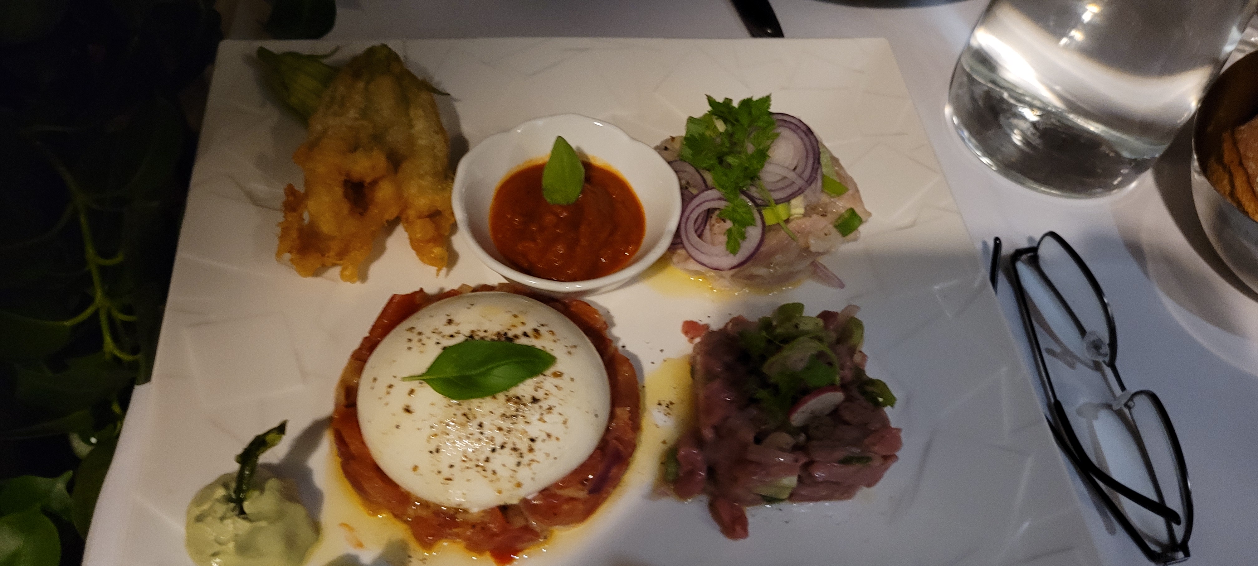 L'atelier du goût porte bien son nom il y a du goût dans les assiettes. Ceviche de daurade délicieux rafraîchissant entrée parfaite en ce moment. Suivi d'une daube de seiche à la provençale meilleure recette pour la seiche c'est cuit comme il faut, goûteux. Et pour finir la pêche en trompe l'oeil : moi qui n'aime pas le chocolat blanc j'ai tout mangé c'est délicat hummm. Je recommande ce restaurant