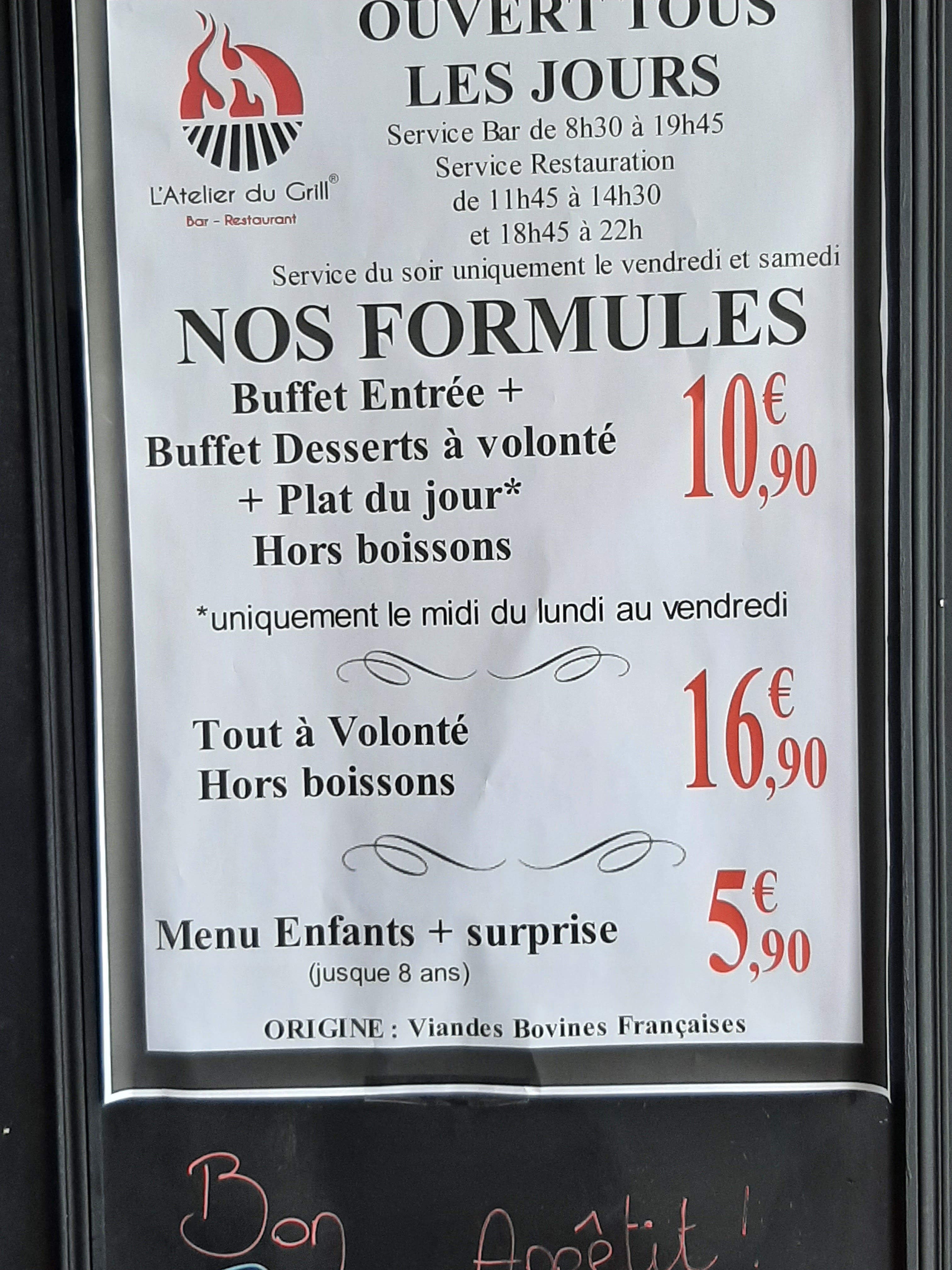 Bonjour à tous, après entretien avec un membre du personnel il apparaît que des commentaires soient modifié à mon étonnement Date de publication et autres Je tiens à mettre les choses au clair L'atelier du Grill a traversé les choses de la vie(COVID,crises)mais ce Bar Restaurant recient en force tant que sur l'accueil,le service et la restauration la preuve ,j'y suis tous les jours, Félicitations au personnel et à la Direction pour leurs efforts Quand c'est bien aussi il faut le dire Je suis client depuis 14 ans Merci à vous de prendre en compte cet avis Bonne continuation Amicalement Alain 👍 merci