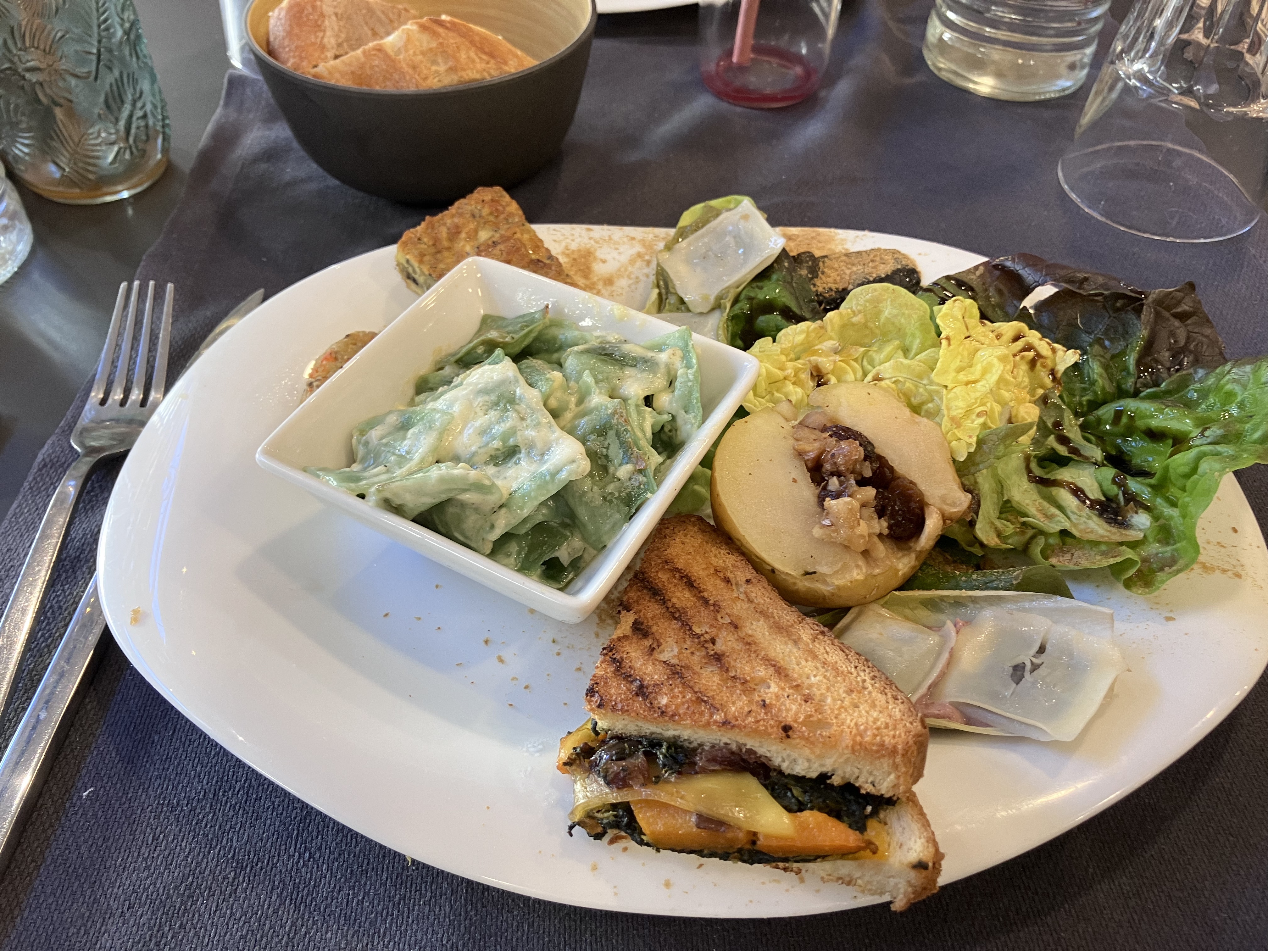 Repas végétariens, exceptionnels, y compris, sans gluten à la demande. Des saveurs de surprise en surprise.