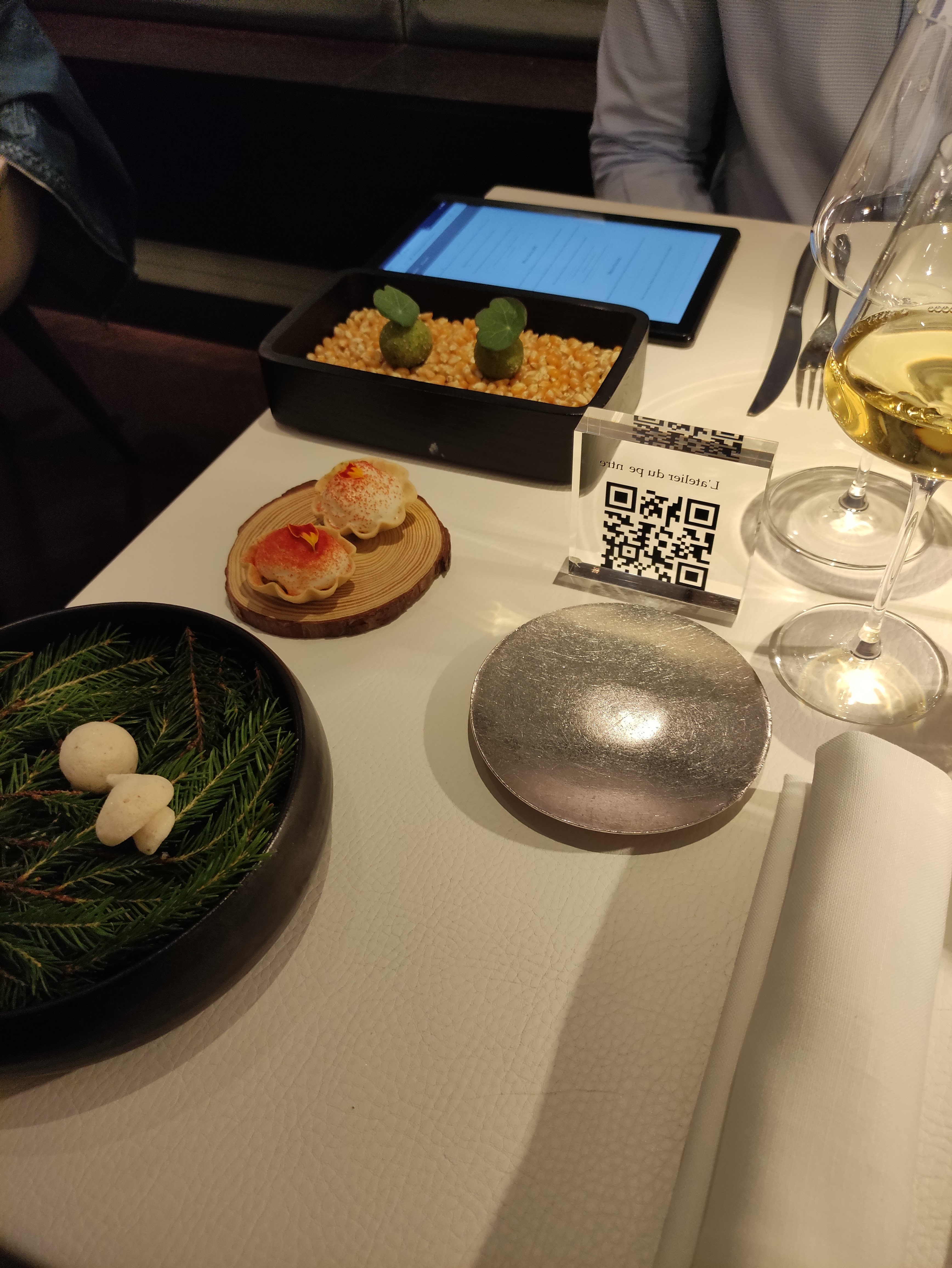 L'accueil sobre nous plonge dans l'ambiance de la salle, calme et agréable. Les plats sont esthétiquement incroyables, un vrai travail de présentation est mis en avant, et sait charmer. Le chef cherche continuellement à opposer les idées et les préjugés et nous entraîne dans son monde culinaire où l'aventure gustative prime sur la quantité. De plus, l'espace séparant les tables et suffisamment large pour que mon puisse profiter de cette escapade culinaire en toute tranquillité. Une aventure que je recommande vivement, pour découvrir le monde de la gastronomie accessible en famille ou en couple. Bravo !