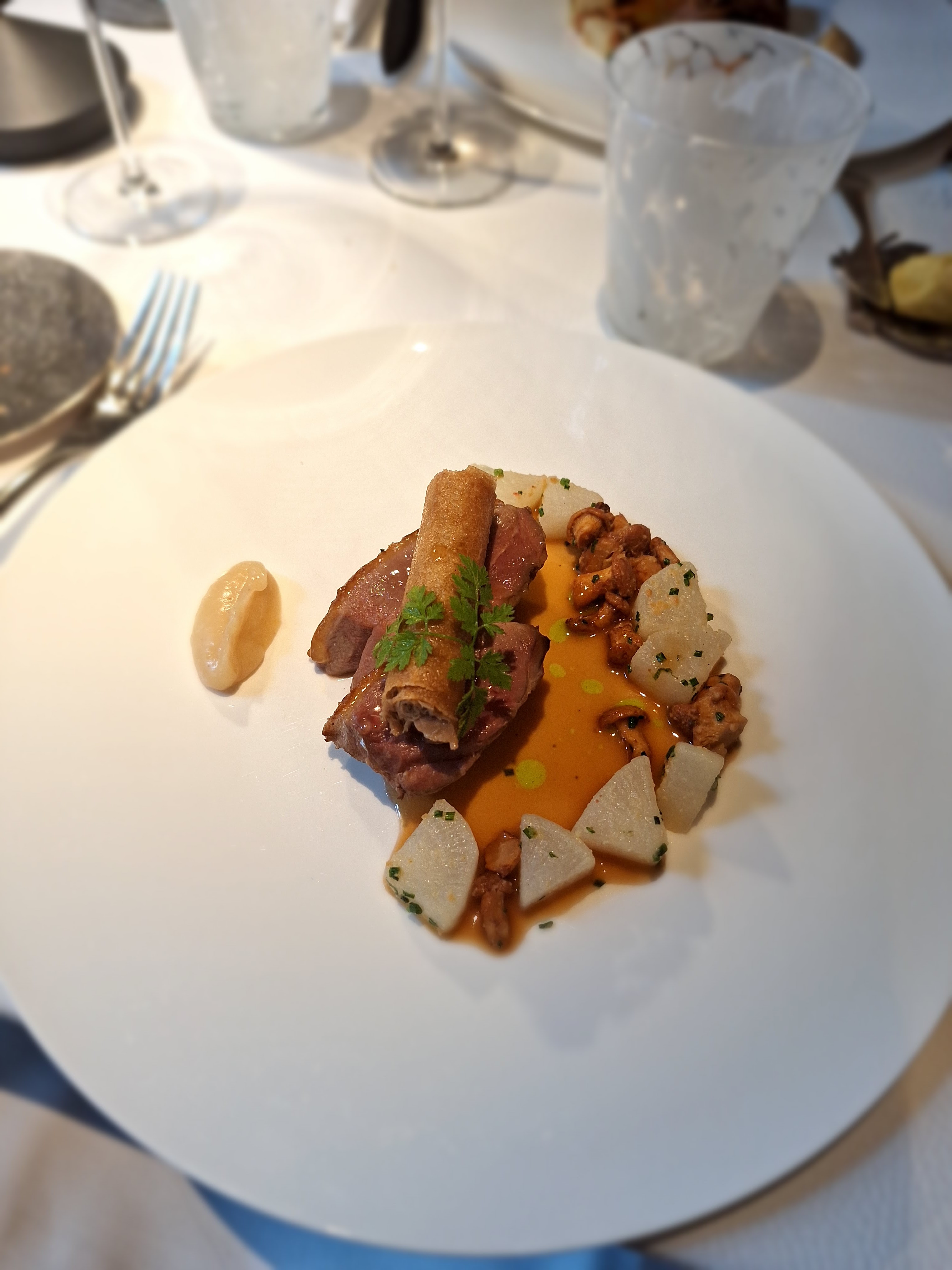 Presque… parfait ! De jolis assiettes, une générosité réelle. C’est créatif, le goût est là entre classiques et créativité. Mises en bouches généreuses, et globalement pas mal. Le service est accessible, serveur qui fait évoluer positivement le classicisme d’anciennes tables étoilées. Variable toutefois, la patronne (?) qui nous a accueillis était bien plus glaçante. Un sommelier arrivant tardivement et sans faire goûter le vin avant d’en servir un verre complet. Surprenant ? Le décor est magnifique, vrai coup de cœur, totalement cohérent avec l’identité du restaurant. Rapport qualité-prix très bon au déjeuner en période de marché de Noël.