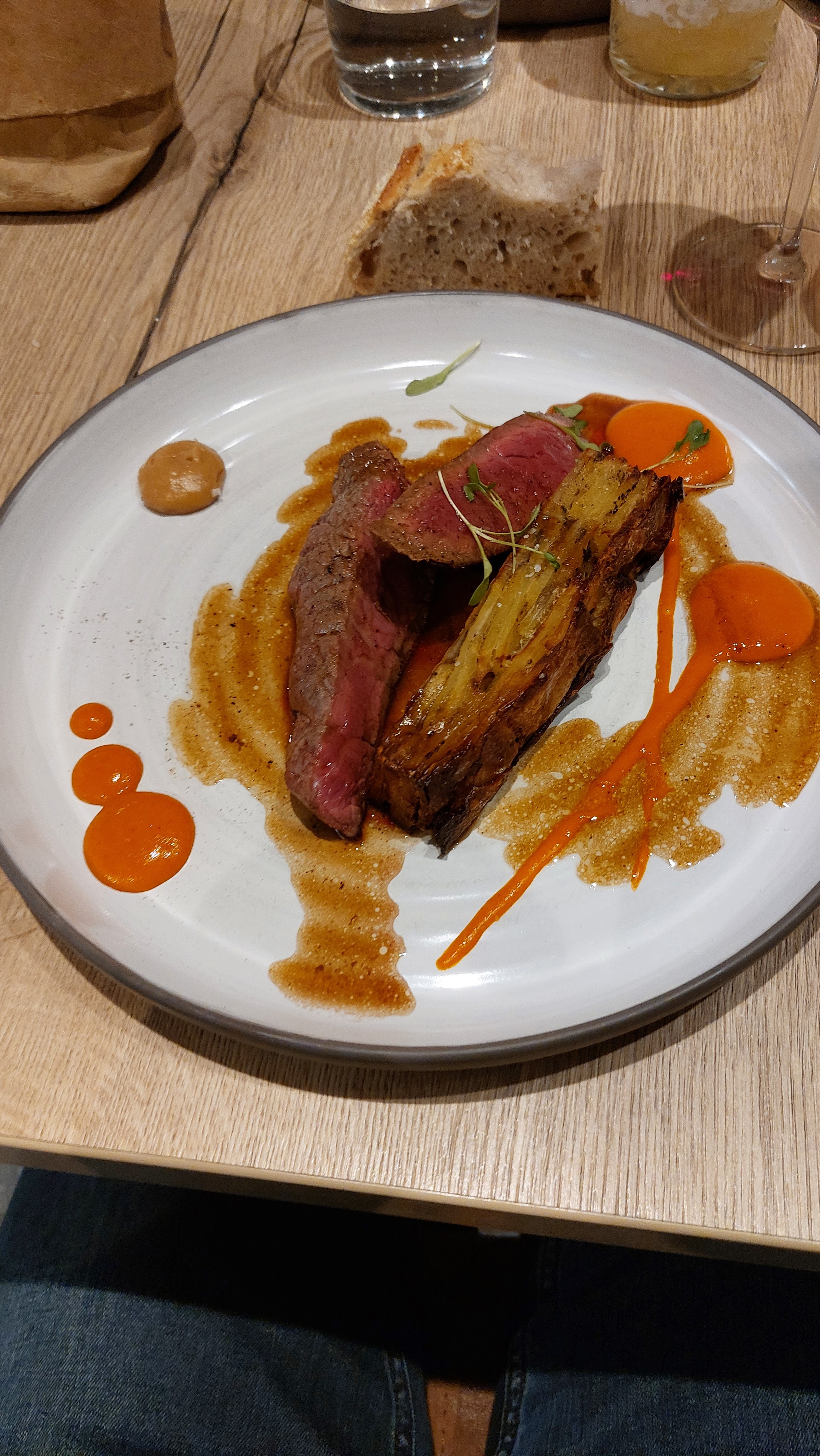 Bien, très très bien même. Joli cadre, belles formules, équipe très sympa (les tatouages !), situation, cuisine ouverte, jolis plats (petit bémol sur la pièce du boucher qui manquait un peu de maturité, trop fraîche) bons vins, desserts à tomber. Ne relâchez rien, des efforts toujours, rien n'est acquis, nous reviendrons. Merci.